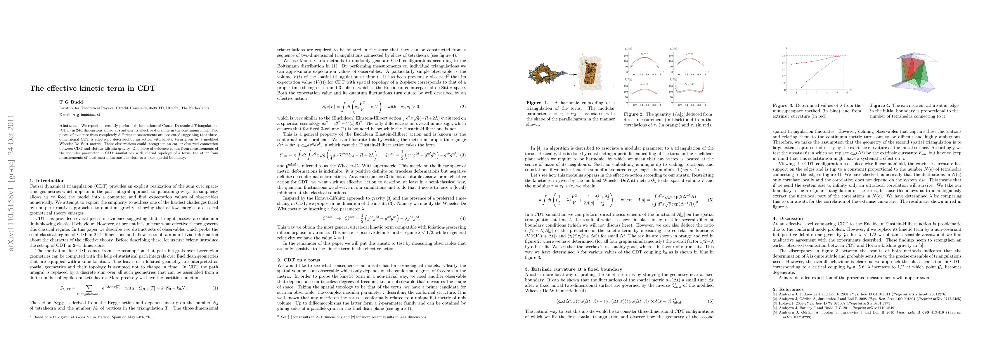 This research investigates the effective dynamics of Causal Dynamical Triangulations (CDT) in 2+1 dimensions, revealing that three-dimensional CDT is described by a modified Wheeler-De Witt metric kinetic term. Evidence from modular parameter measurements and local metric fluctuations supports this connection, potentially linking CDT to Horava-Lifshitz gravity.