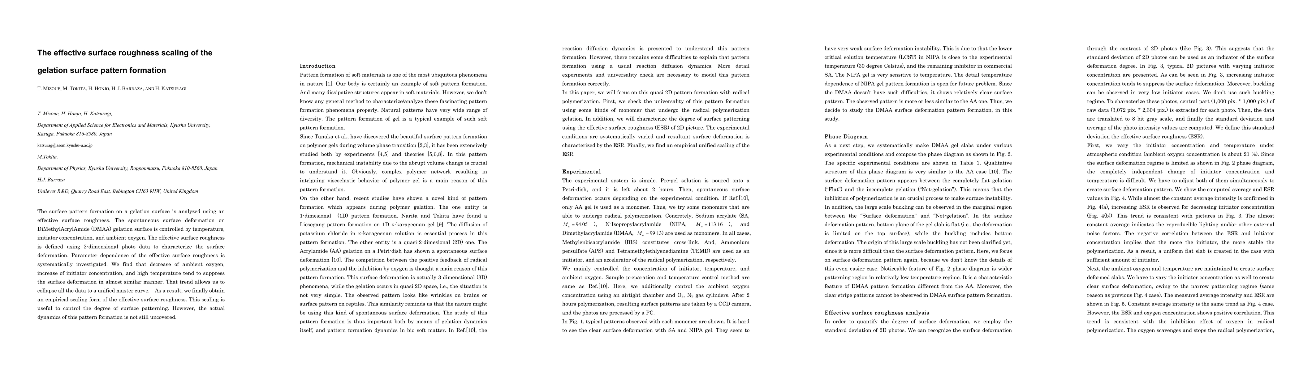 Researchers studied how surface roughness affects gelation on a DMAA gelation surface and found an empirical scaling form of effective surface roughness that can control surface patterning.