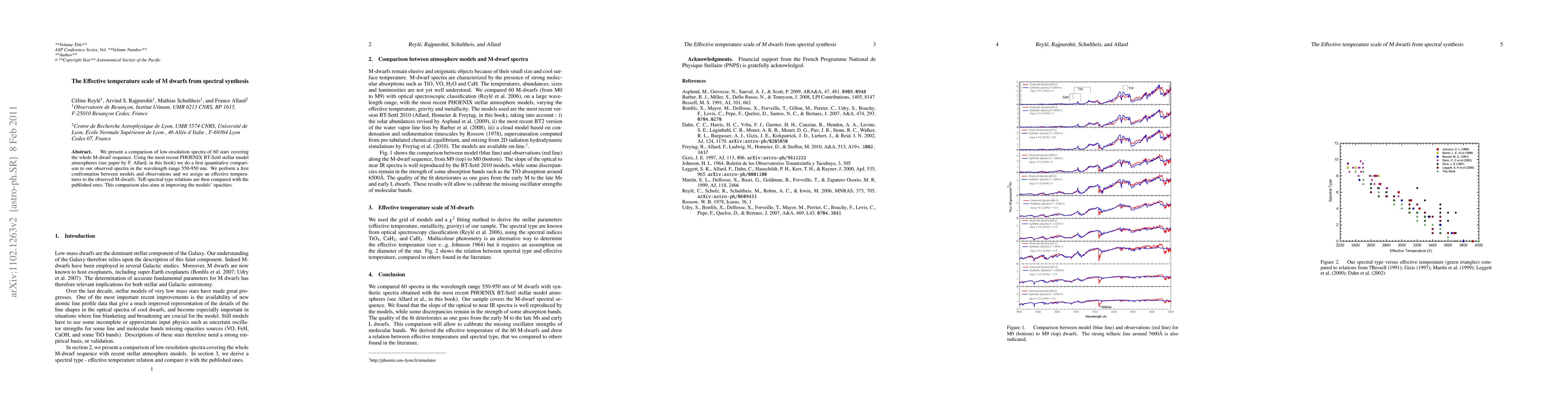 This paper compares low-resolution spectra of 60 M dwarfs using PHOENIX BT-Settl models to determine effective temperatures, improving model opacities, and evaluates Teff-spectral type relations against existing published data. The study aims to refine the temperature scale for M dwarfs through spectral synthesis.