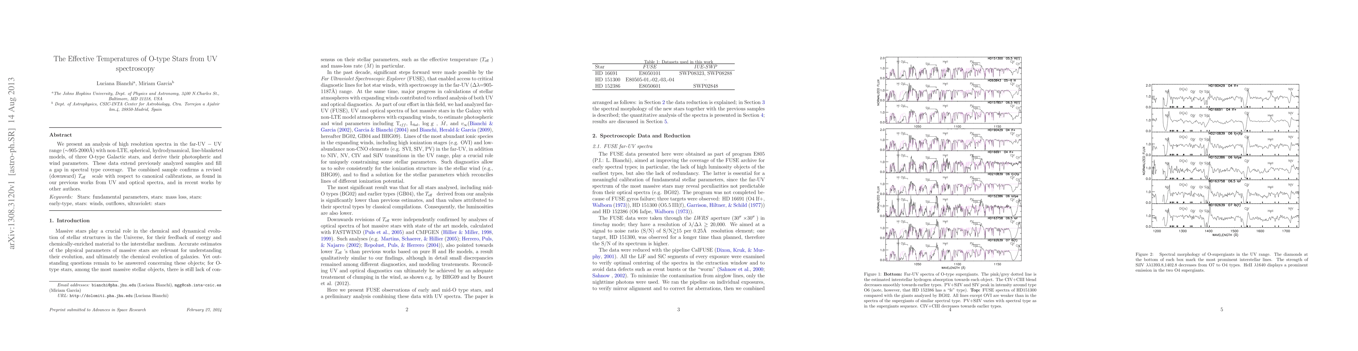 The paper presents an advanced analysis technique using non-LTE, hydrodynamical models to derive accurate effective temperatures and mass-loss rates for O-type stars from UV and far-UV spectroscopy.
