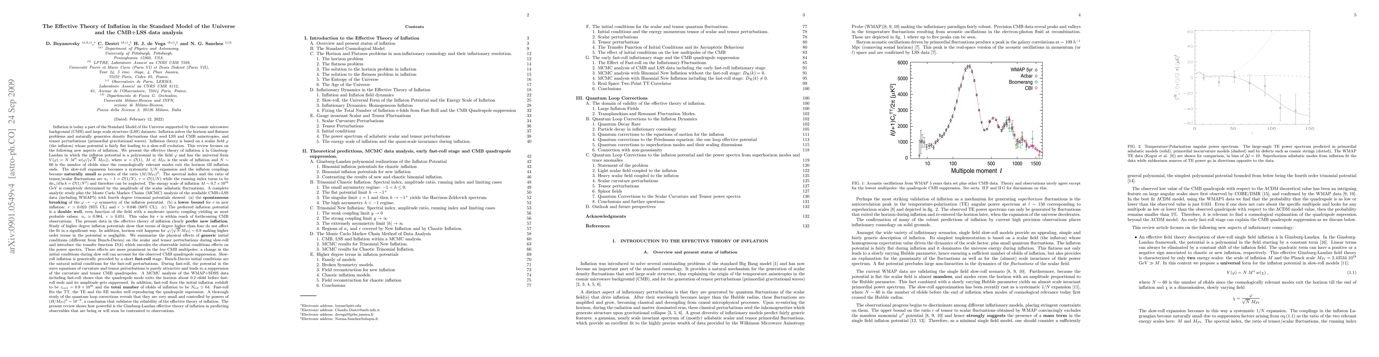 This paper reviews the effective theory of inflation in the Standard Model, emphasizing the Ginsburg-Landau approach. It finds that the inflaton potential is a polynomial with universal form, leading to small inflaton couplings and predictions for the spectral index and tensor-to-scalar ratio. A Monte Carlo analysis of CMB+LSS data suggests a double well potential for inflation, with a tensor-to-scalar ratio within reach of future observations. Quantum loop corrections are shown to be negligible, validating the effective theory.