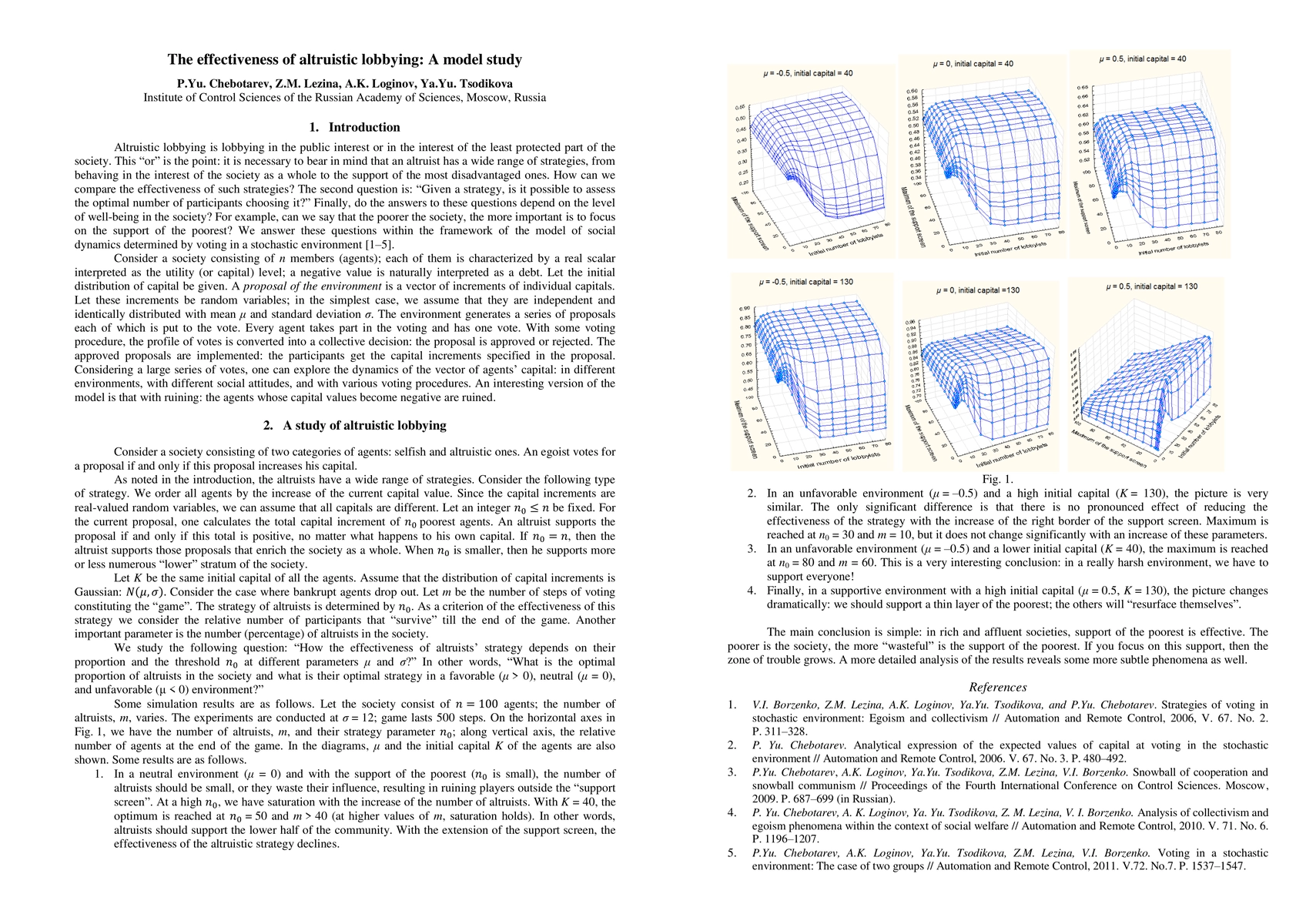 Altruistic lobbying is lobbying in the public interest or in the interest of the least protected part of the society. In fact, an altruist has a wide range of strategies, from behaving in the interest of the society as a whole to the support of the most disadvantaged ones. How can we compare the effectiveness of such strategies? Another question is: "Given a strategy, is it possible to estimate the optimal number of participants choosing it?" Finally, do the answers to these questions depend on the level of well-being in the society? Can we say that the poorer the society, the more important is to focus on the support of the poorest? We answer these questions within the framework of the model of social dynamics determined by voting in a stochastic environment.