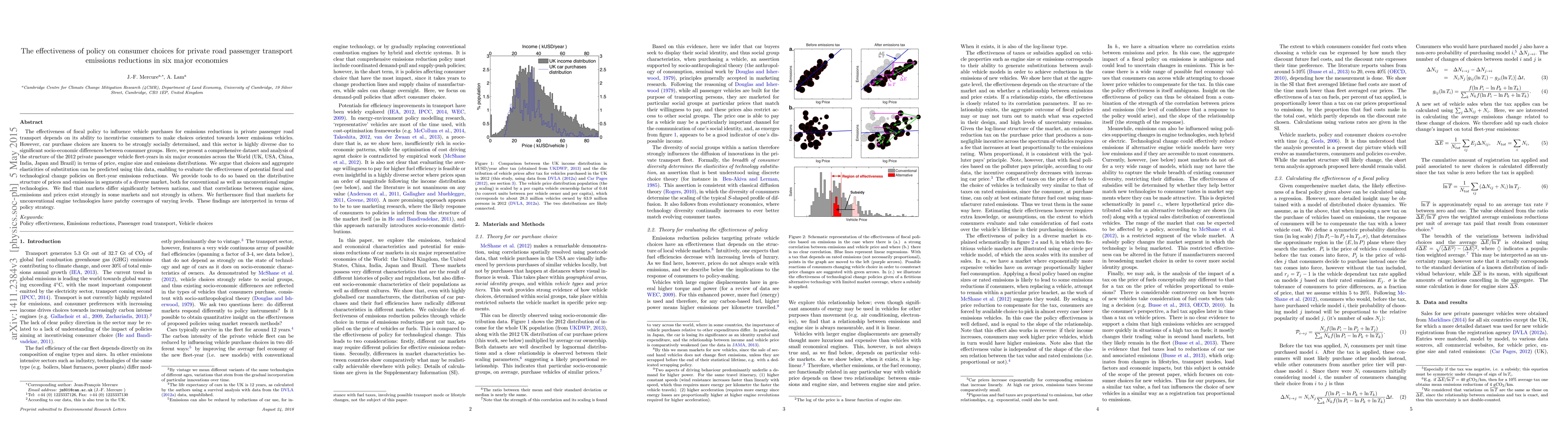 This study analyzes the impact of fiscal policy on consumer choices for low-emission vehicles in six major economies, finding significant differences in market structures and correlations between vehicle price, engine size, and emissions. The research provides tools to evaluate policy effectiveness based on market segment data and highlights the need for tailored strategies due to diverse market conditions.