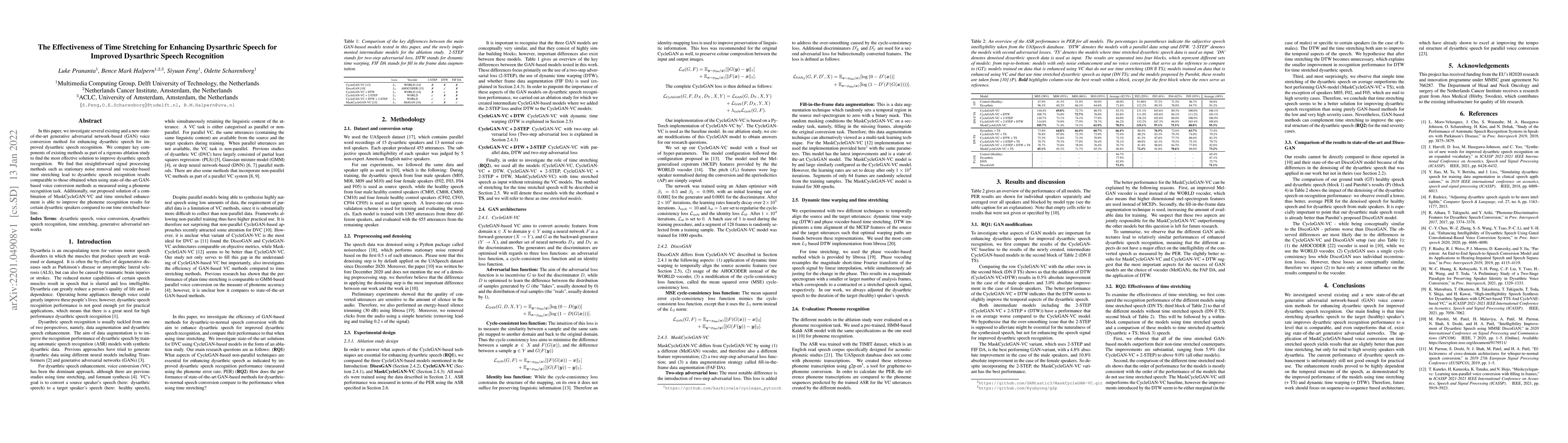 This research investigates generative adversarial network-based methods for enhancing dysarthric speech to improve recognition, finding that simple time stretching techniques yield results comparable to advanced GANs, while a combined approach further enhances recognition for specific speakers.