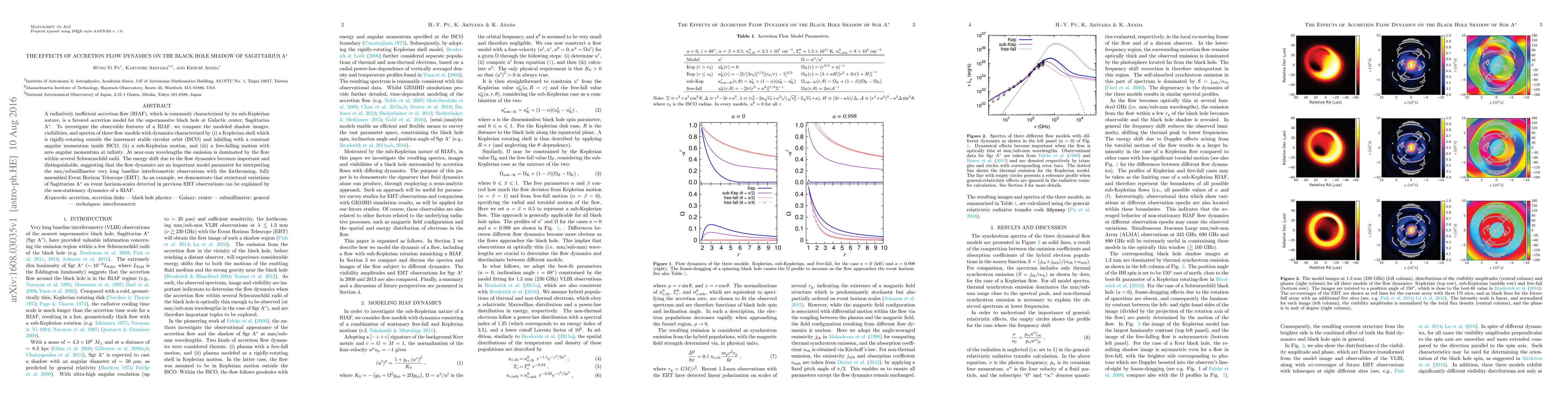 This paper investigates the effects of different accretion flow dynamics on the shadow of Sagittarius A$^{*}$, the supermassive black hole at the Galactic center. It finds that the flow dynamics significantly influence the observable features, suggesting they are crucial for interpreting future mm/submillimeter observations from the Event Horizon Telescope.