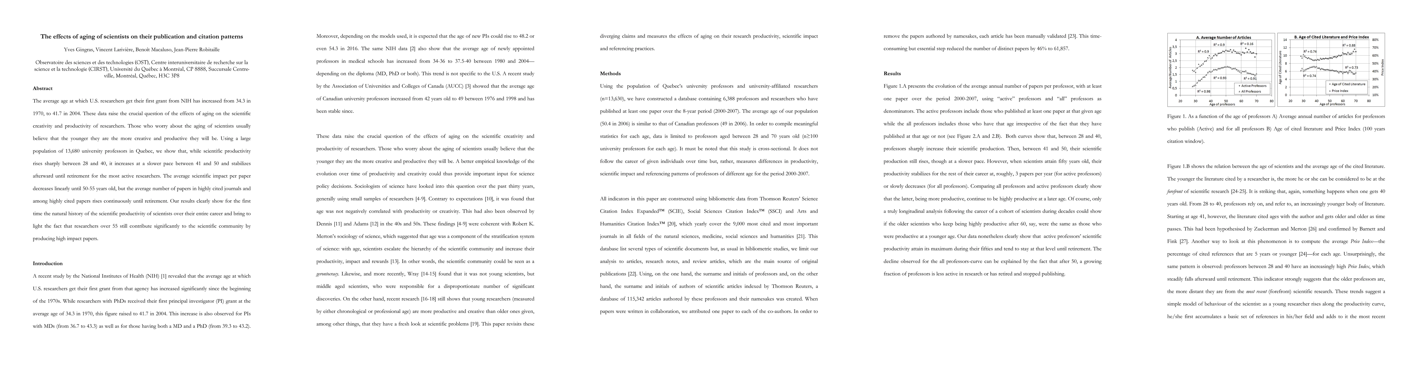 Researchers over 55 continue to contribute significantly to science with high-impact papers, contrary to common assumptions that younger scientists are more creative and productive. Productivity peaks between 28-40 years old before stabilizing until retirement.
