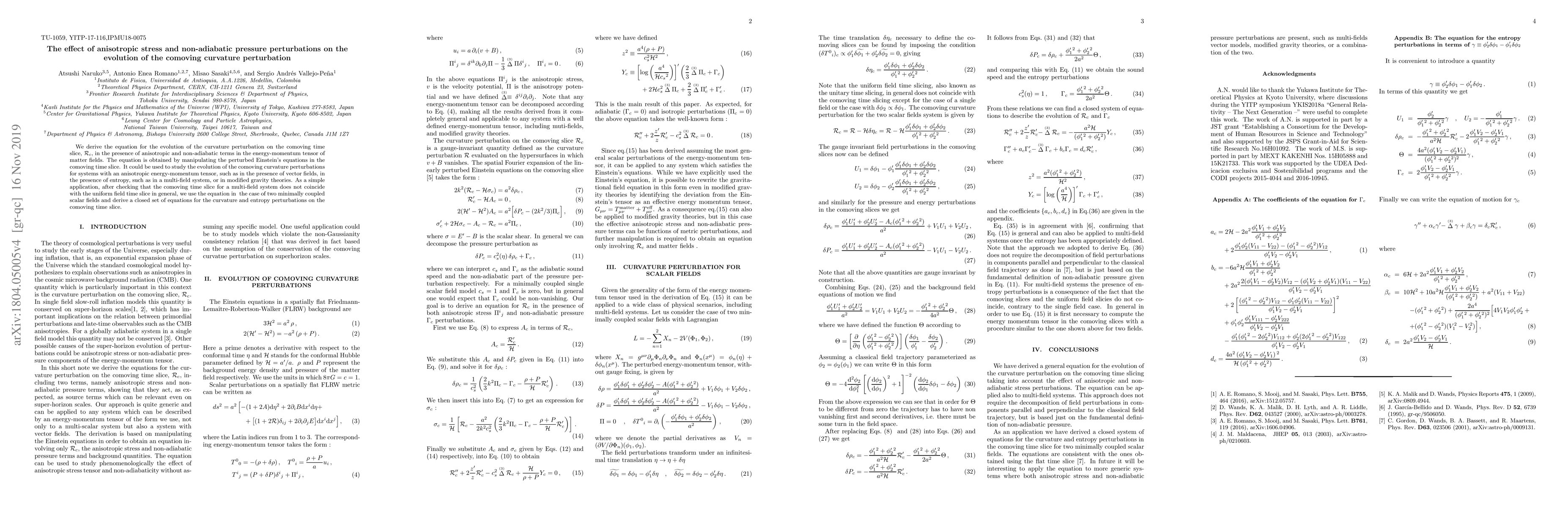 We derive the equation for the evolution of the curvature perturbation on the comoving time slice, $\mathcal{R}_c$, in the presence of anisotropic and non-adiabatic terms in the energy-momentum tensor of matter fields. The equation is obtained by manipulating the perturbed Einstein's equations in the comoving time slice. It could be used to study the evolution of the comoving curvature perturbations for systems with an anisotropic energy-momentum tensor, such as in the presence of vector fields, in the presence of entropy, such as in a multi-field system, or in modified gravity theories. As a simple application, after checking that the comoving time slice for a multi-field system does not coincide with the uniform field time slice in general, we use the equation in the case of two minimally coupled scalar fields and derive a closed set of equations for the curvature and entropy perturbations on the comoving time slice.
