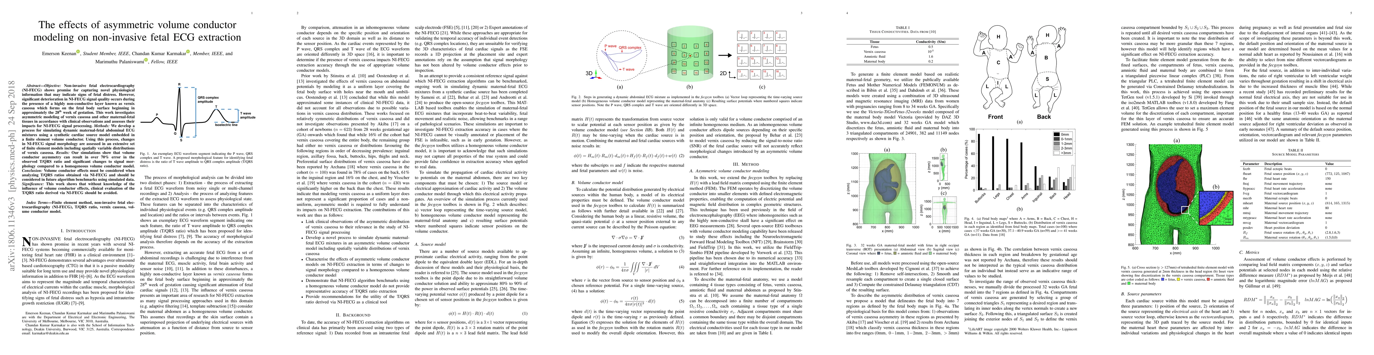 This study investigates how asymmetric volume conductor modeling, particularly of vernix caseosa, affects non-invasive fetal ECG (NI-FECG) extraction, revealing significant signal quality deterioration and over 70% error in T/QRS ratios compared to homogeneous models. It emphasizes the necessity of considering volume conductor effects in NI-FECG analysis and algorithm benchmarks.