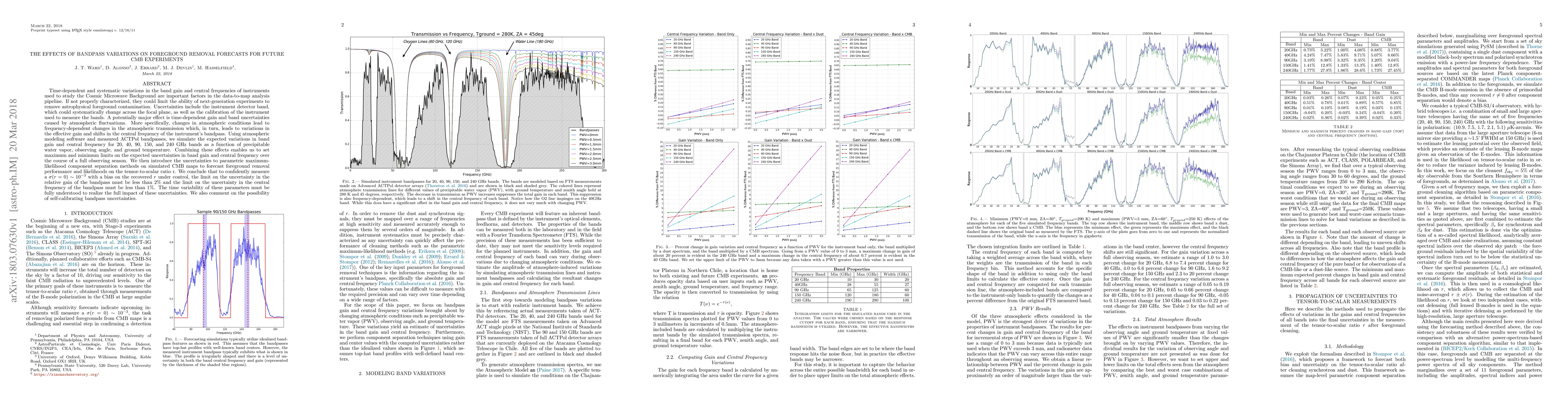 This paper investigates the impact of bandpass variations on the ability of future Cosmic Microwave Background (CMB) experiments to remove astrophysical foregrounds. It finds that uncertainties in band gain and central frequency, especially due to atmospheric fluctuations, can significantly affect foreground removal performance, necessitating an uncertainty limit of <2% for relative gain and <1% for central frequency to achieve a tensor-to-scalar ratio measurement precision of $\sigma(r=0)$ ~ $10^{-3}$.