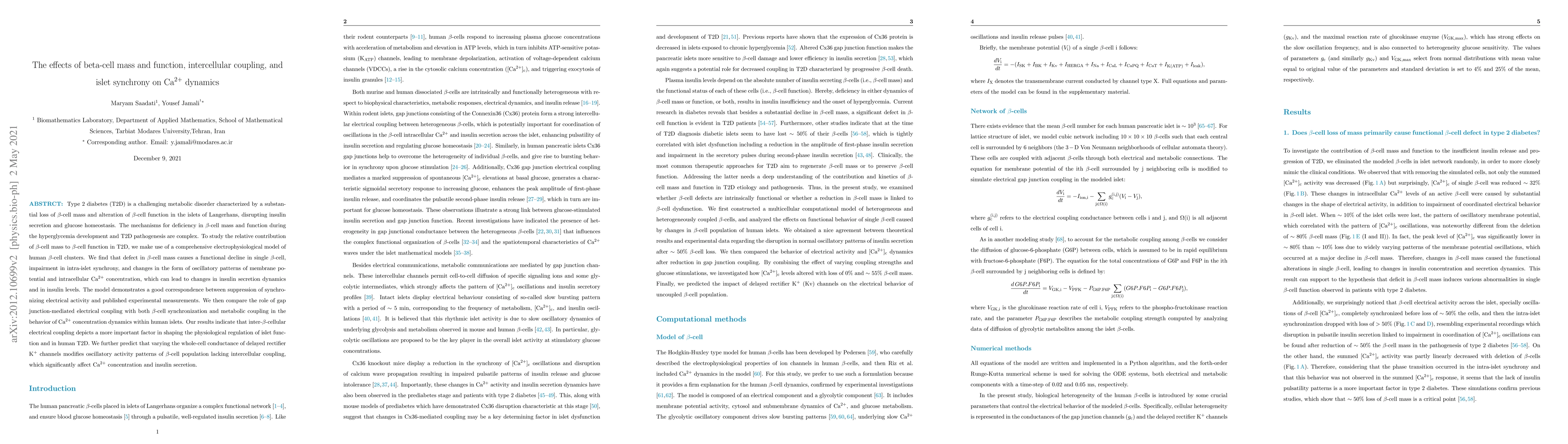 This research investigates the impact of $\beta$-cell mass, function, intercellular coupling, and synchrony on $\textrm{Ca}^{2+}$ dynamics in the context of Type 2 diabetes. The study finds that reduced $\beta$-cell mass impairs function, disrupts synchrony, and alters $\textrm{Ca}^{2+}$ oscillatory patterns, affecting insulin secretion, with electrical coupling playing a crucial role in regulating islet function.