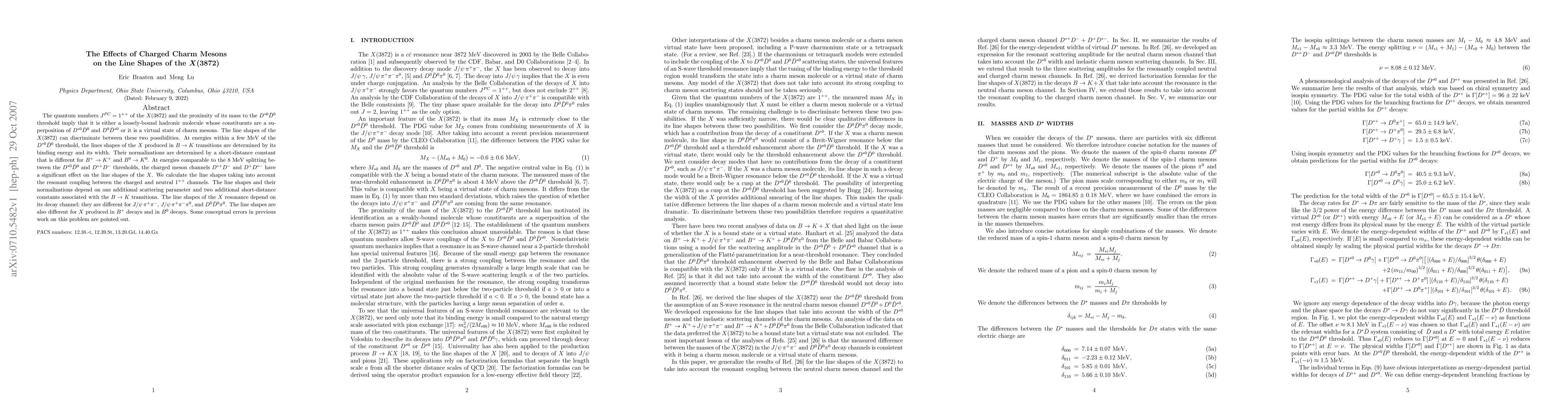 This research investigates the X(3872) particle's line shapes to differentiate between its nature as a hadronic molecule or a virtual state of charm mesons. The study finds that line shapes depend on the particle's binding energy, width, and decay channel. It also highlights the significant impact of charged meson channels D*+ D- and D+ D*- on line shapes at energies comparable to the D*0 anti-D0 threshold splitting. The analysis corrects conceptual errors from previous works.