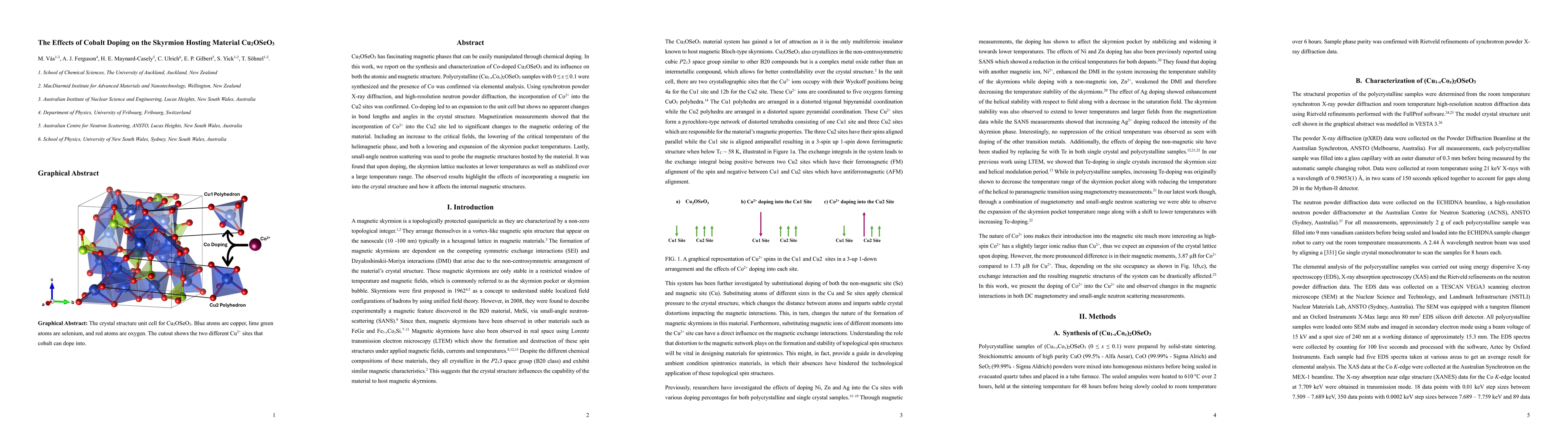 The work demonstrates the synthesis and characterization of Co-doped polycrystalline Cu2OSeO3, providing evidence of Co2+ ion incorporation and its impact on the material's atomic and magnetic structure.