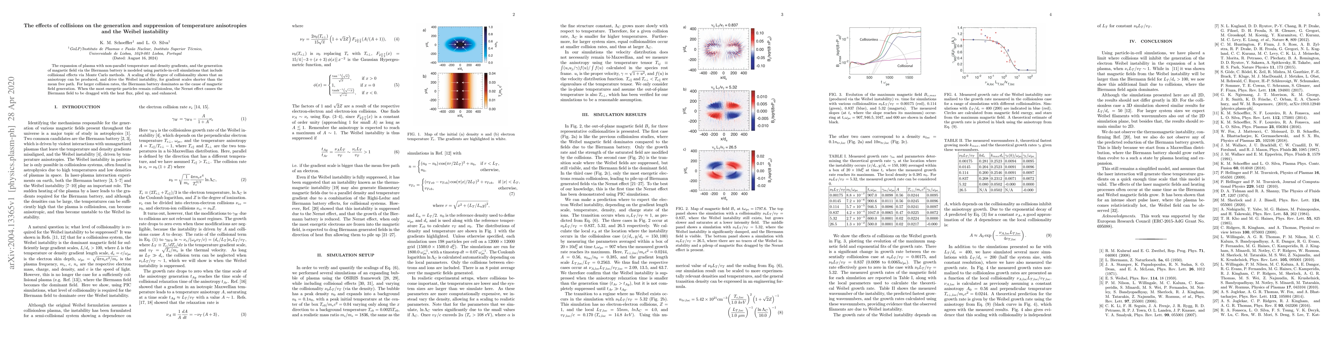 This study uses particle-in-cell simulations to model plasma expansion with non-parallel gradients, showing that collisionality influences the generation of temperature anisotropies and the Weibel instability. Higher collision rates favor magnetic field generation via the Biermann battery, while lower collision rates enhance the Biermann field through the Nernst effect.