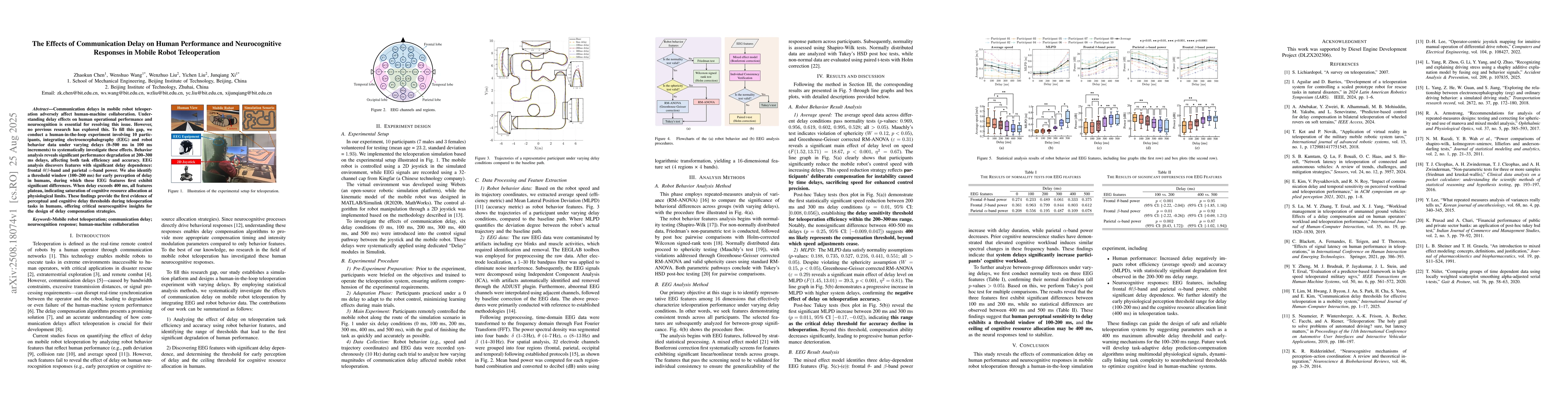 Communication delays in mobile robot teleoperation adversely affect human-machine collaboration. Understanding delay effects on human operational performance and neurocognition is essential for resolving this issue. However, no previous research has explored this. To fill this gap, we conduct a human-in-the-loop experiment involving 10 participants, integrating electroencephalography (EEG) and robot behavior data under varying delays (0-500 ms in 100 ms increments) to systematically investigate these effects. Behavior analysis reveals significant performance degradation at 200-300 ms delays, affecting both task efficiency and accuracy. EEG analysis discovers features with significant delay dependence: frontal $\theta/\beta$-band and parietal $\alpha$-band power. We also identify a threshold window (100-200 ms) for early perception of delay in humans, during which these EEG features first exhibit significant differences. When delay exceeds 400 ms, all features plateau, indicating saturation of cognitive resource allocation at physiological limits. These findings provide the first evidence of perceptual and cognitive delay thresholds during teleoperation tasks in humans, offering critical neurocognitive insights for the design of delay compensation strategies.