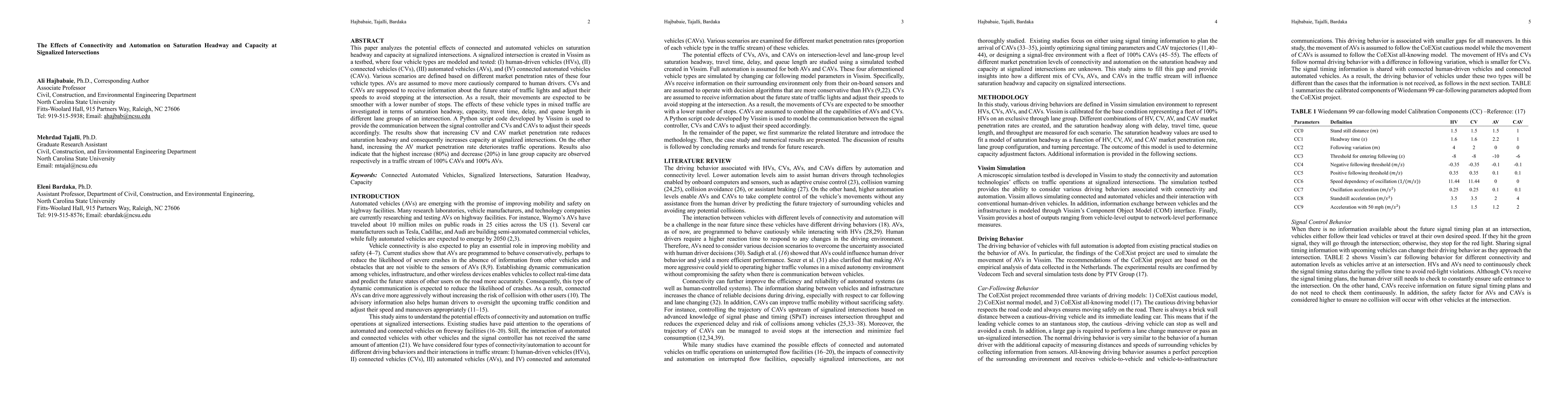 This study examines how connected and automated vehicles impact saturation headway and capacity at signalized intersections using Vissim simulations. The results show that higher market penetration of connected and automated vehicles improves capacity and reduces saturation headway, while increased autonomous vehicle presence worsens traffic operations.