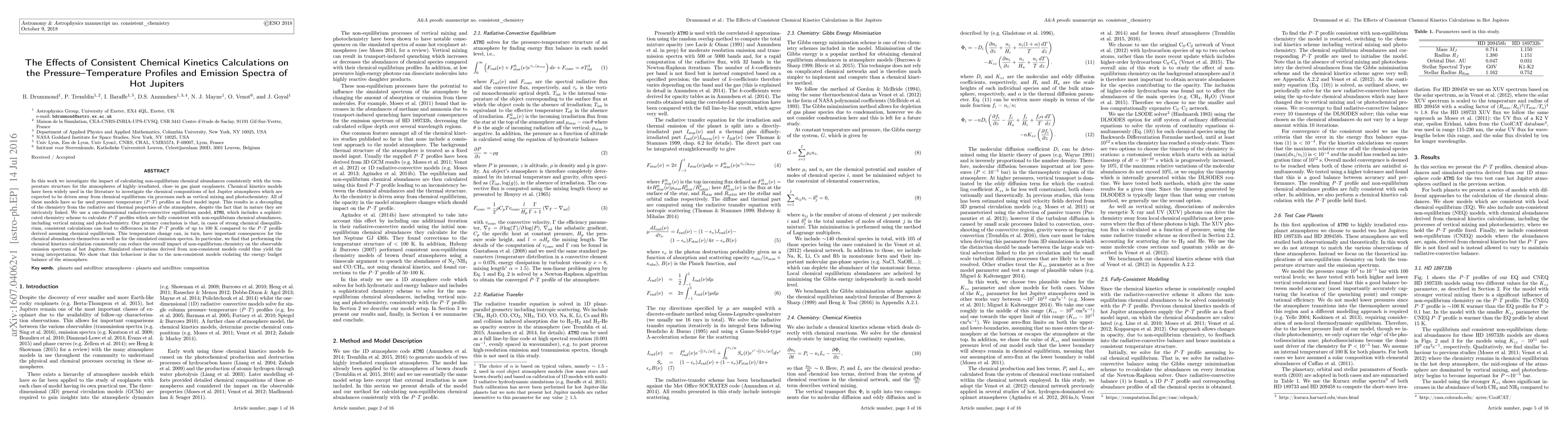 This study examines the impact of consistent chemical kinetics calculations on the pressure-temperature profiles and emission spectra of hot Jupiters, finding that non-equilibrium chemistry can lead to P-T profile differences of up to 100 K compared to equilibrium models. Consistent calculations reduce the impact of non-equilibrium on emission spectra, highlighting the importance of linking chemistry with atmospheric radiative and thermal properties.