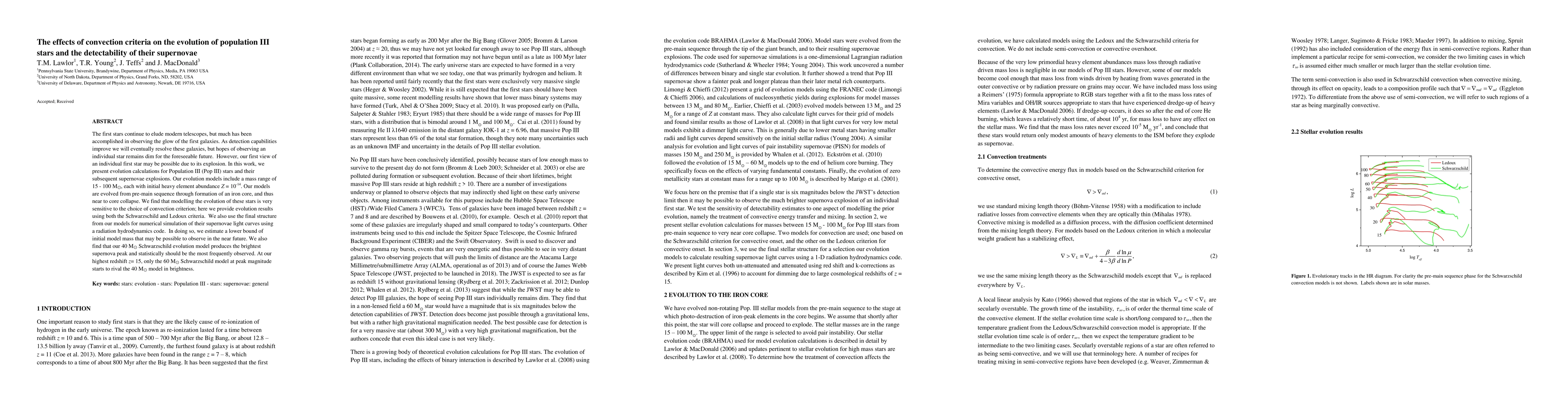 This paper investigates the impact of different convection criteria on the evolution of Population III stars and the detectability of their supernovae. It finds that the choice of convection criterion significantly affects the models, with the 40 M$_\odot$ Schwarzschild model producing the brightest supernova peak, suggesting it may be the most frequently observable in the future.