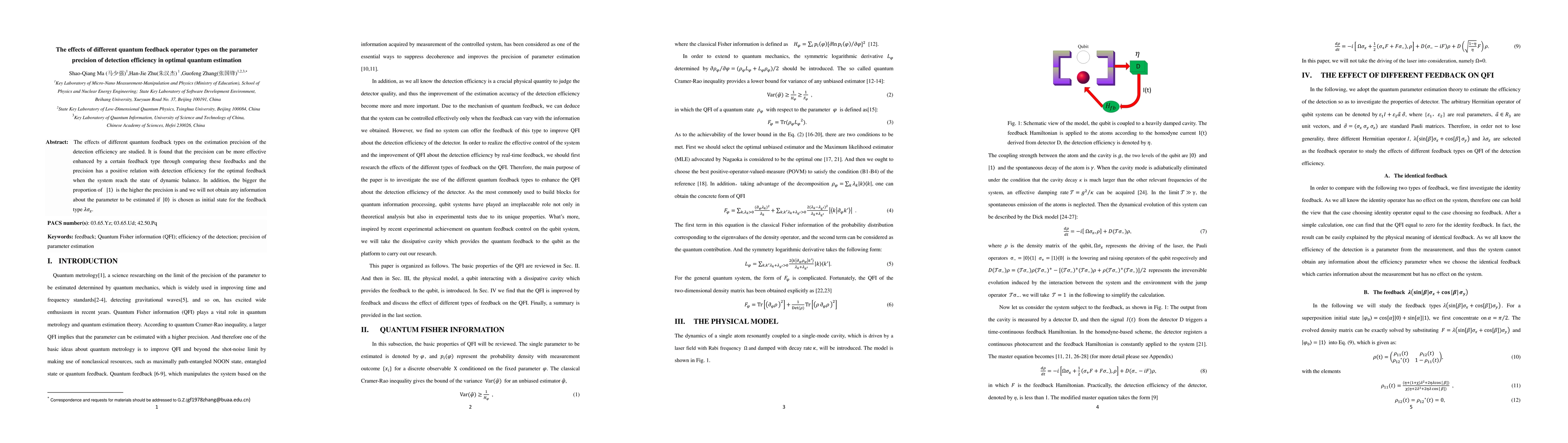 This paper investigates how various quantum feedback operators affect the precision of detection efficiency in optimal quantum estimation. It concludes that certain feedback types significantly enhance precision, which positively correlates with detection efficiency when the system reaches dynamic balance, while the feedback type {\lambda}{\sigma}_z does not provide any information about the estimated parameter when used as an initial state.