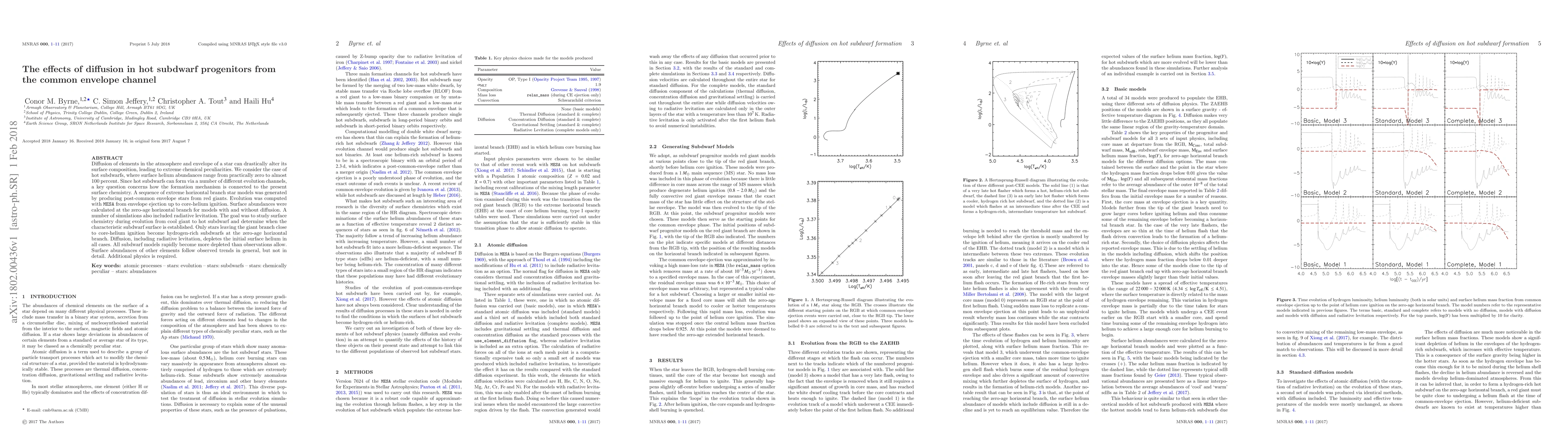 This study investigates the effects of diffusion on hot subdwarf progenitors formed via the common envelope channel, finding that diffusion depletes initial surface helium, leading to discrepancies with observed helium abundances in hot subdwarfs. Additional physical processes are suggested to better match observed surface chemistry.