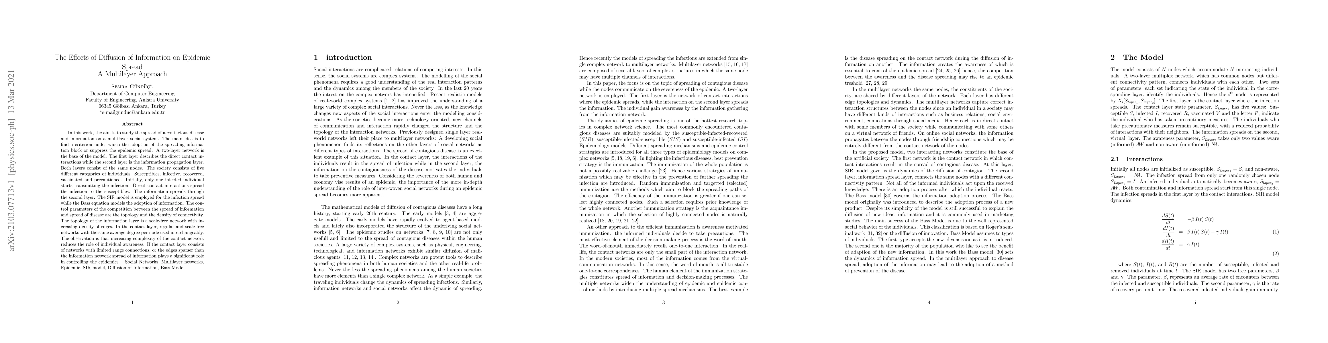 The paper introduces a multilayer network approach to model the simultaneous spread of disease and information, combining SIR and Bass diffusion models.