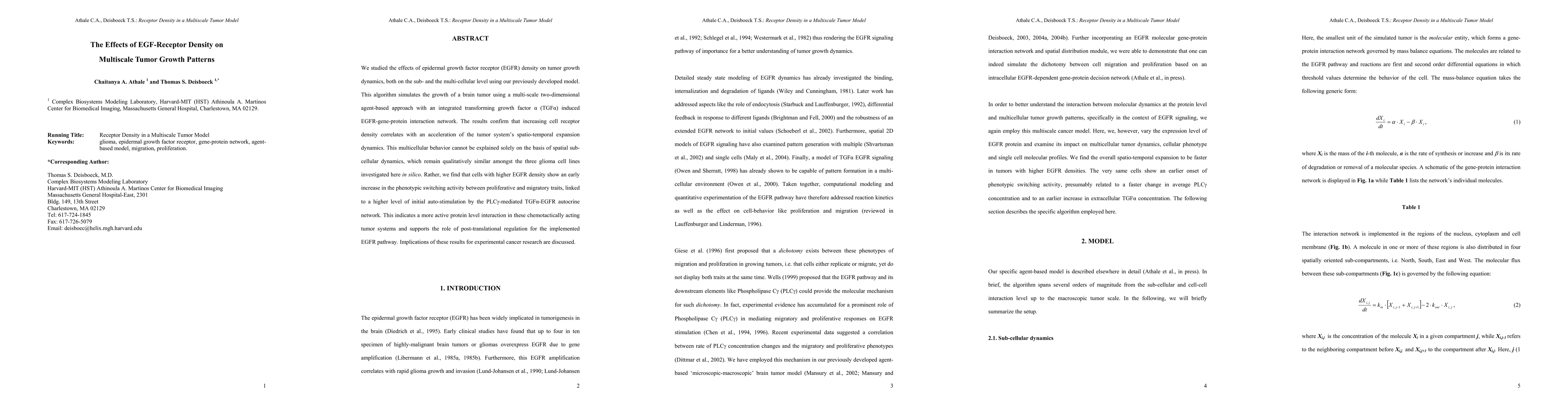We studied the effects of epidermal growth factor receptor (EGFR) density on tumor growth dynamics, both on the sub- and the multi-cellular level using our previously developed model. This algorithm simulates the growth of a brain tumor using a multi-scale two-dimensional agent-based approach with an integrated transforming growth factor alpha (TGFalpha) induced EGFR-gene-protein interaction network. The results confirm that increasing cell receptor density correlates with an acceleration of the tumor system's spatio-temporal expansion dynamics. This multicellular behavior cannot be explained solely on the basis of spatial sub-cellular dynamics, which remain qualitatively similar amongst the three glioma cell lines investigated here in silico. Rather, we find that cells with higher EGFR density show an early increase in the phenotypic switching activity between proliferative and migratory traits, linked to a higher level of initial auto-stimulation by the PLCgamma-mediated TGFalpha-EGFR autocrine network. This indicates a more active protein level interaction in these chemotactically acting tumor systems and supports the role of post-translational regulation for the implemented EGFR pathway. Implications of these results for experimental cancer research are discussed.