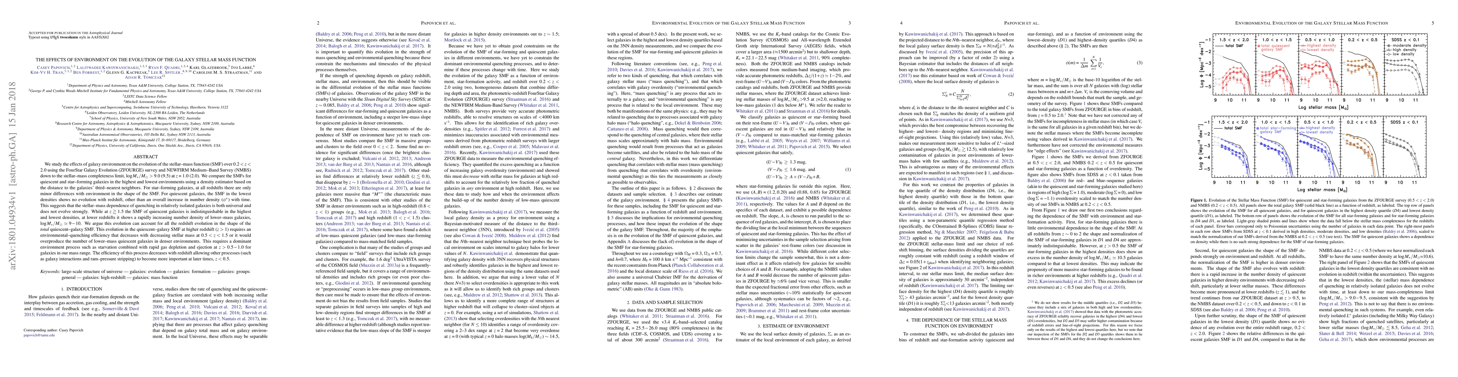 This study examines how galaxy environment influences the evolution of the stellar-mass function (SMF) from redshifts 0.2 to 2.0. It finds minor differences in the SMF shape for star-forming galaxies across environments but significant evolution in the SMF for quiescent galaxies in lower-density regions, suggesting a universal stellar-mass dependence of quenching.