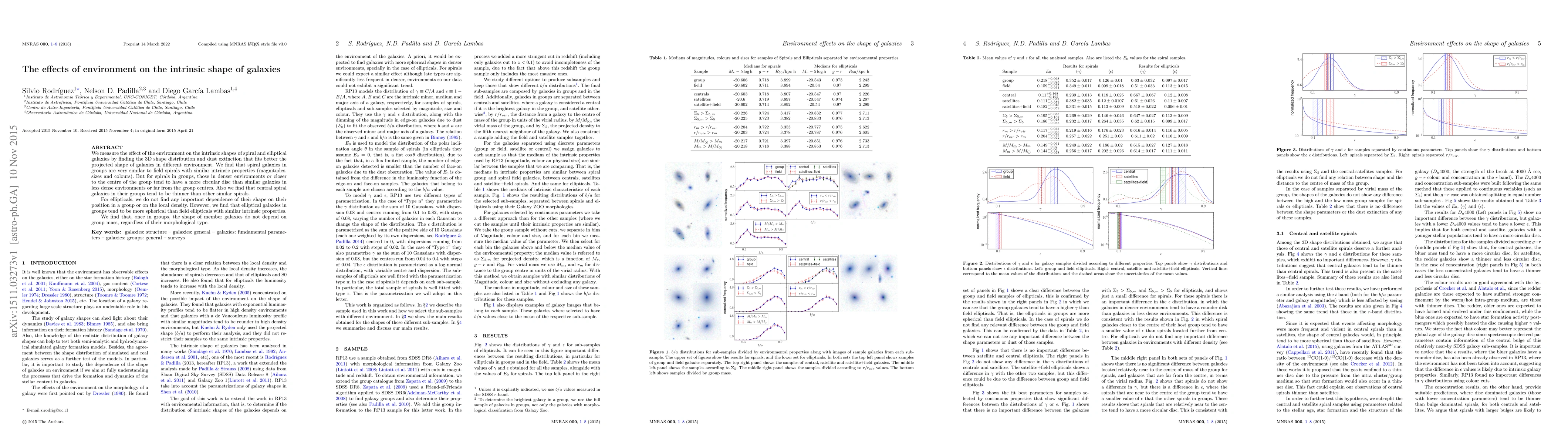 We measure the effect of the environment on the intrinsic shapes of spiral and elliptical galaxies by finding the 3D shape distribution and dust extinction that fits better the projected shape of galaxies in different environment. We find that spiral galaxies in groups are very similar to field spirals with similar intrinsic properties (magnitudes, sizes and colours). But for spirals in groups, those in denser environments or closer to the centre of the group tend to have a more circular disc than similar galaxies in less dense environments or far from the group centres. Also we find that central spiral galaxies in their groups tend to be thinner than other similar spirals. For ellipticals, we do not find any important dependence of their shape on their position in a group or on the local density. However, we find that elliptical galaxies in groups tend to be more spherical than field ellipticals with similar intrinsic properties. We find that, once in groups, the shape of member galaxies do not depend on group mass, regardless of their morphological type.