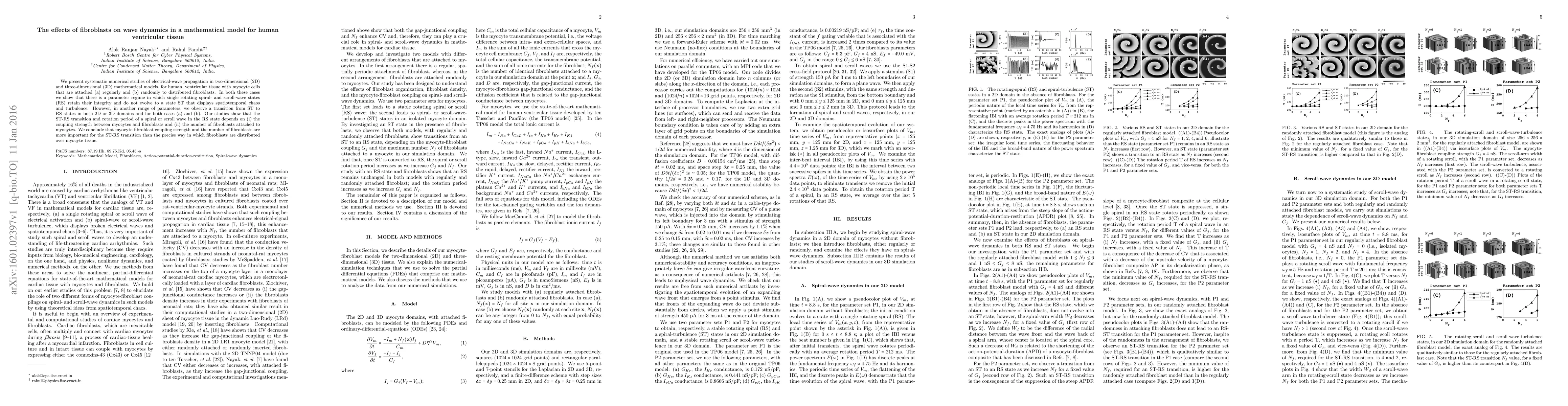 This paper investigates the impact of fibroblasts on electrical wave dynamics in human ventricular tissue models, finding that fibroblast coupling strength and quantity significantly influence the transition from spatiotemporal chaos to stable rotating spiral waves, regardless of fibroblast distribution.