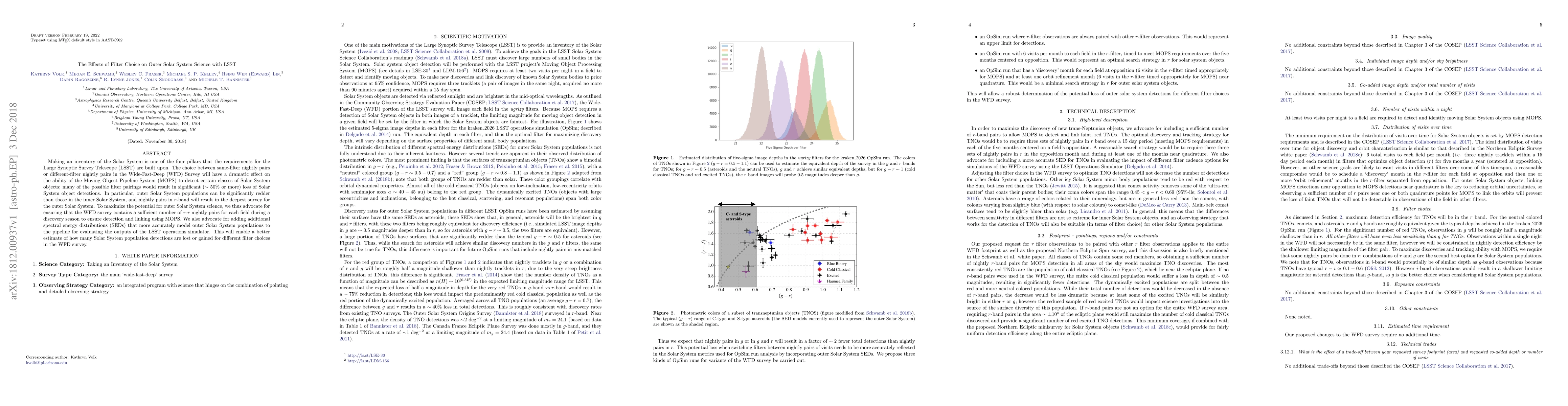 This paper examines how filter choices in the Large Synoptic Survey Telescope's Wide-Fast-Deep Survey impact the detection of Solar System objects, particularly emphasizing the need for $r$-band nightly pairs to maximize outer Solar System science. It recommends using more $r$-$r$ pairs and improved spectral models to optimize detections and assess survey outcomes.