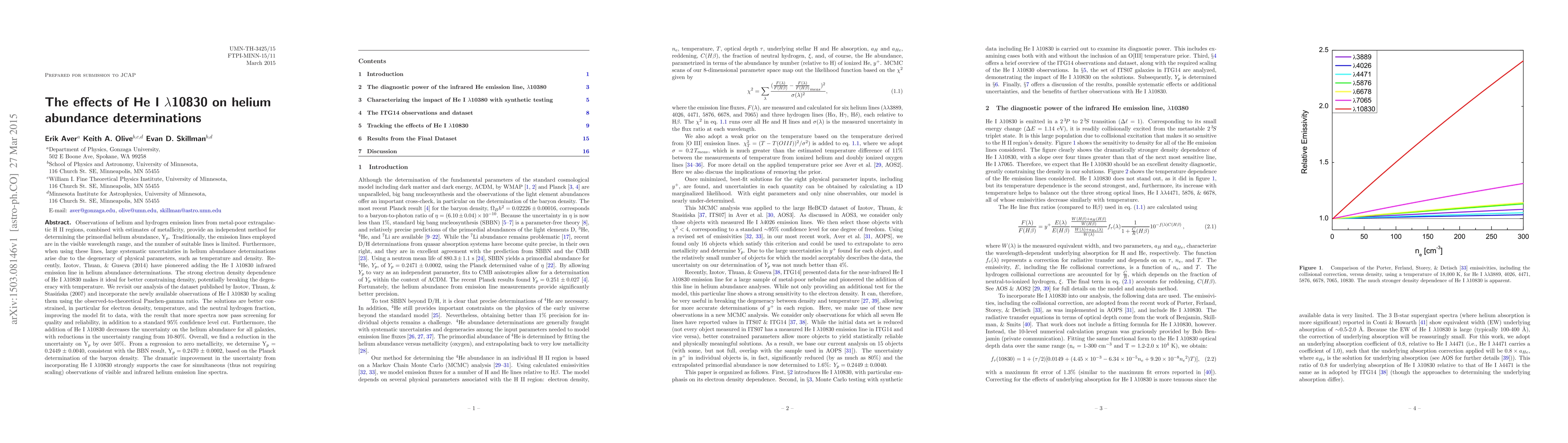 This paper investigates the impact of incorporating the He I 10830 infrared emission line in helium abundance determinations, finding significant reductions in uncertainties and improvements in model fits. The addition of He 10830 decreases the uncertainty on the primordial helium abundance, Y_p, by over 50%, leading to a refined determination of Y_p = 0.2449 +/- 0.0040.