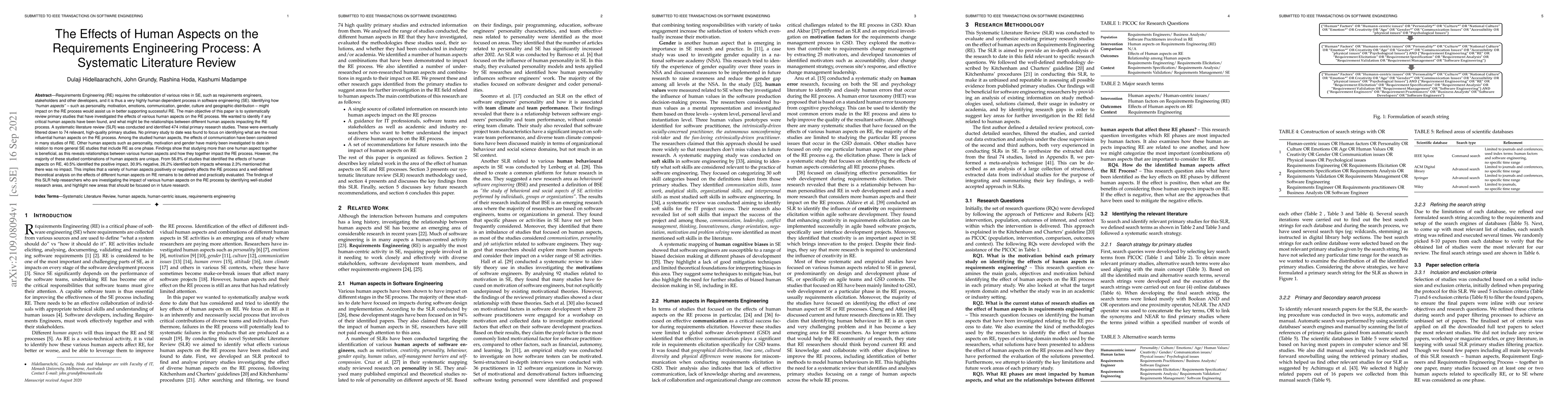 This paper systematically reviews 74 high-quality studies to identify how human aspects like communication, personality, and culture impact Requirements Engineering (RE) in software engineering. Findings indicate that while communication has been widely studied, the combined effects of multiple human aspects remain underexplored, suggesting a need for further research to define their theoretical and practical implications on RE.