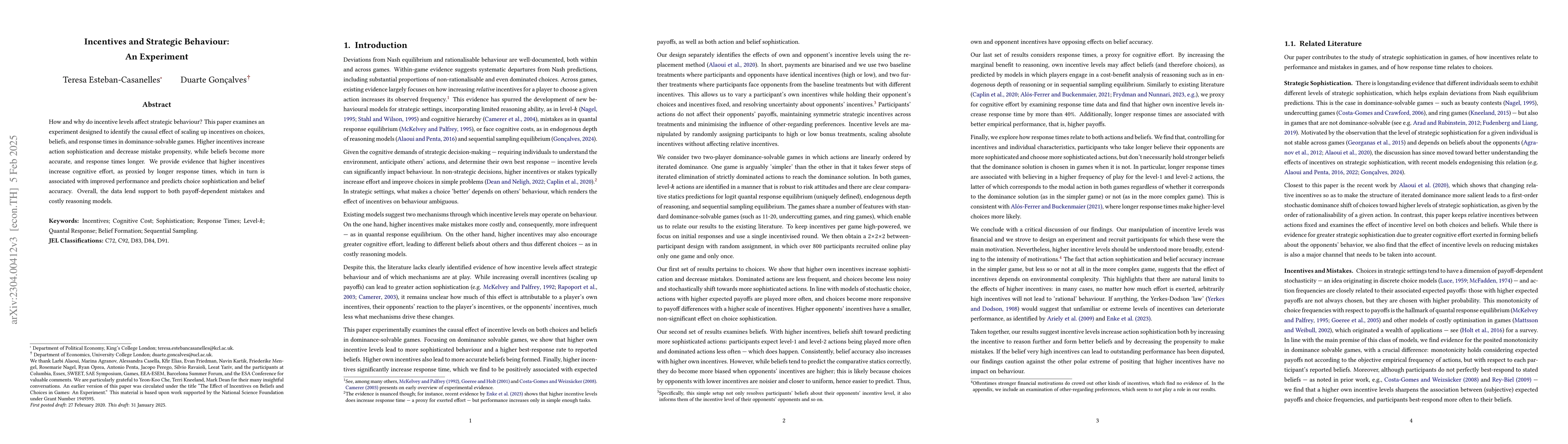 This paper investigates how varying incentive levels impact strategic choices and beliefs in games, revealing that higher incentives lead to more sophisticated actions and better predictions in dominance-solvable games, while also increasing cognitive effort and bias in predicting opponents' actions. The findings support the notion that both mistake likelihood and reasoning costs are influenced by incentive levels.