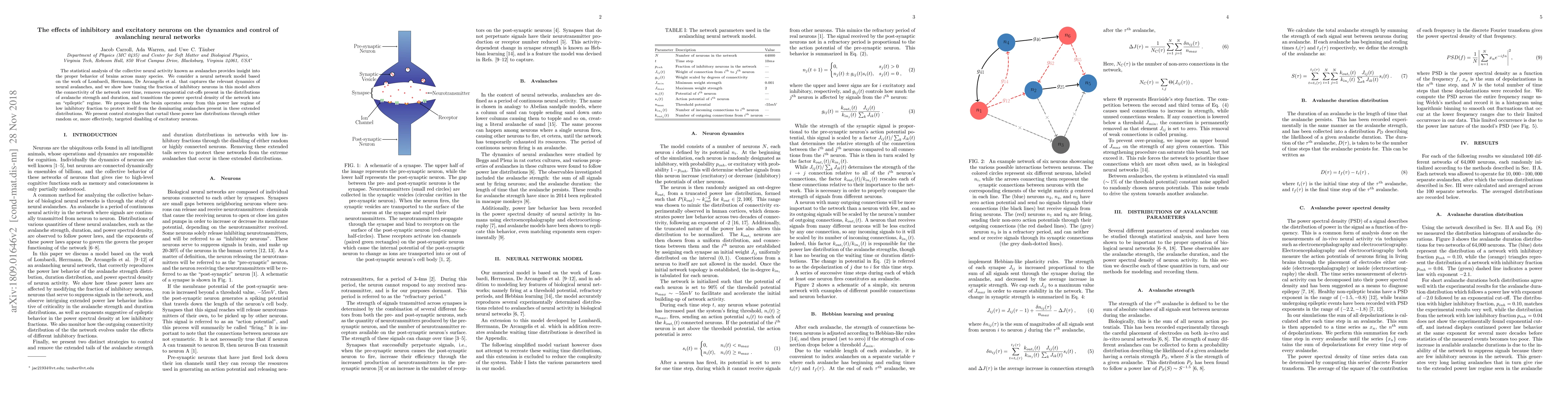 The statistical analysis of the collective neural activity known as avalanches provides insight into the proper behavior of brains across many species. We consider a neural network model based on the work of Lombardi, Herrmann, De Arcangelis et al. that captures the relevant dynamics of neural avalanches, and we show how tuning the fraction of inhibitory neurons in this model alters the connectivity of the network over time, removes exponential cut-offs present in the distributions of avalanche strength and duration, and transitions the power spectral density of the network into an `epileptic' regime. We propose that the brain operates away from this power law regime of low inhibitory fraction to protect itself from the dominating avalanches present in these extended distributions. We present control strategies that curtail these power law distributions through either random or, more effectively, targeted disabling of excitatory neurons.