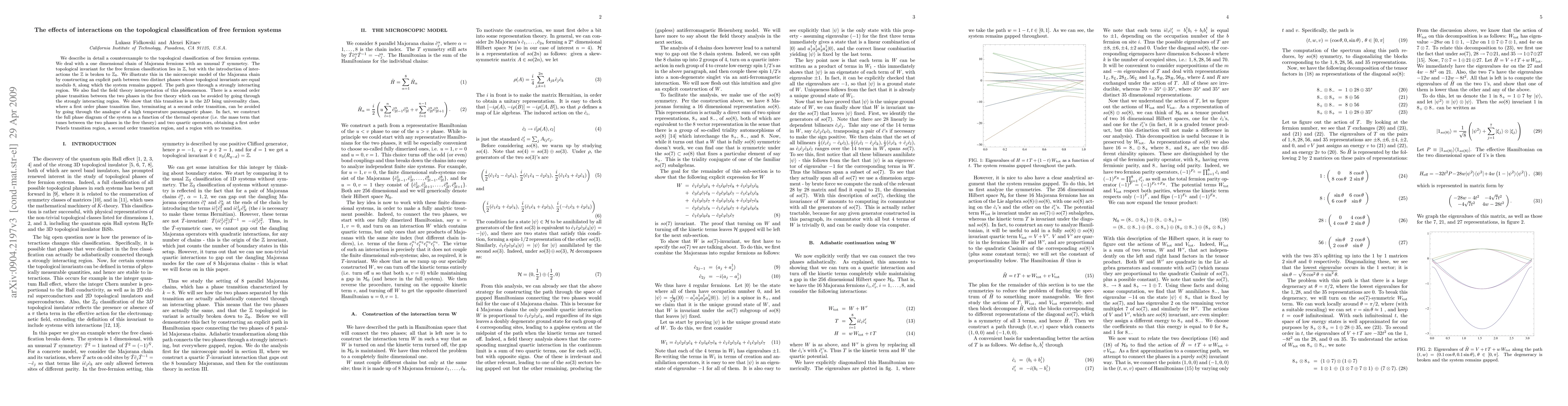 We describe in detail a counterexample to the topological classification of free fermion systems. We deal with a one dimensional chain of Majorana fermions with an unusual T symmetry. The topological invariant for the free fermion classification is an integer, but with the introduction of interactions it becomes well defined only modulo 8. We illustrate this in the microscopic model of the Majorana chain by constructing an explicit path between two distinct free phases whose topological invariants are equal modulo 8, along which the system remains gapped. The path goes through a strongly interacting region. We also find the field theory interpretation of this phenomenon. There is a second order phase transition between the two phases in the free theory which can be avoided by going through the strongly interacting region. We show that this transition is in the 2D Ising universality class, where a first order phase transition line, terminating at a second order transition, can be avoided by going through the analogue of a high temperature paramagnetic phase. In fact, we construct the full phase diagram of the system as a function of the thermal operator (i.e. the mass term that tunes between the two phases in the free theory) and two quartic operators, obtaining a first order Peierls transition region, a second order transition region, and a region with no transition.