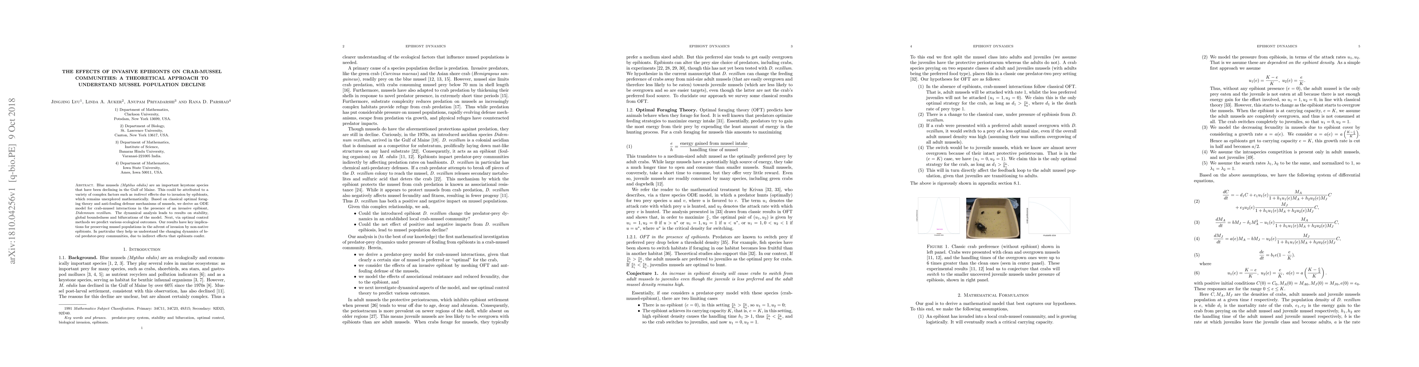 This paper develops an ODE model to explore the decline of blue mussels in the Gulf of Maine due to invasive epibionts, specifically Didemnum vexillum, using optimal foraging theory. The study predicts ecological outcomes and stability of crab-mussel interactions, offering insights for conservation strategies against invasive species.