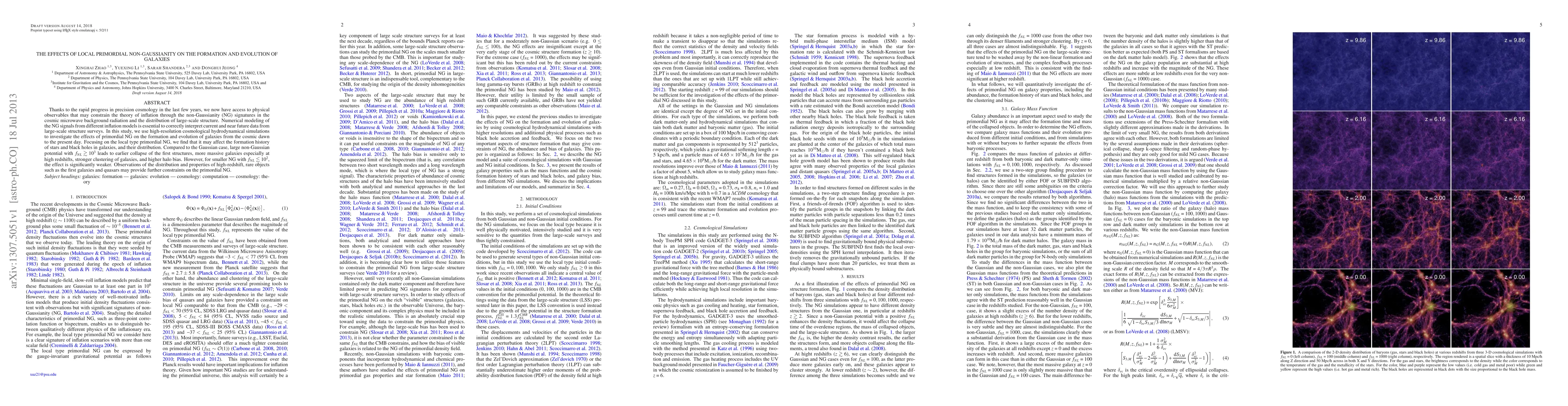 Thanks to the rapid progress in precision cosmology in the last few years, we now have access to physical observables that may constrain the theory of inflation through the non-Gaussianity (NG) signatures in the cosmic microwave background radiation and the distribution of large-scale structure. Numerical modeling of the NG signals from different inflation models is essential to correctly interpret current and near future data from large-scale structure surveys. In this study, we use high-resolution cosmological hydrodynamical simulations to investigate the effects of primordial NG on the formation and evolution of galaxies from the cosmic dawn to the present day. Focusing on the local type primordial NG, we find that it may affect the formation history of stars and black holes in galaxies, and their distribution. Compared to the Gaussian case, large non-Gaussian potential with $f_{NL} \gtrsim 10^3$ leads to earlier collapse of the first structures, more massive galaxies especially at high redshifts, stronger clustering of galaxies, and higher halo bias. However, for smaller NG with $f_{NL} \lesssim 10^2$, the effect is significantly weaker. Observations of the distribution and properties of high-redshift, rare objects such as the first galaxies and quasars may provide further constraints on the primordial NG.