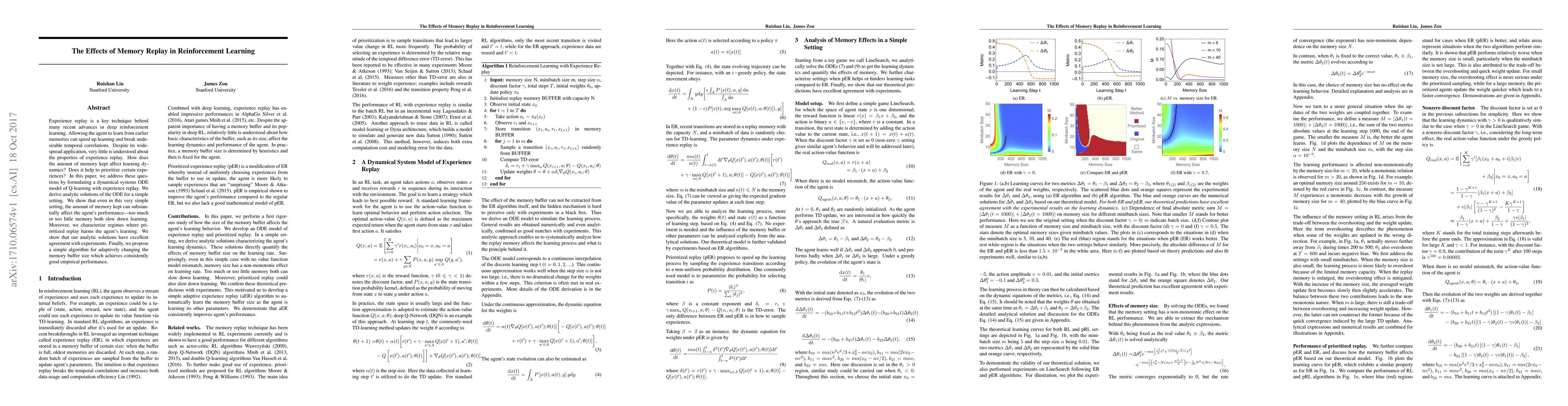 This paper investigates how memory replay in reinforcement learning impacts learning dynamics by modeling experience replay in a Q-learning framework. It finds that both excessive and insufficient memory negatively affect learning, while also identifying conditions where prioritized replay is detrimental, supported by experimental validation and an adaptive memory buffer algorithm.