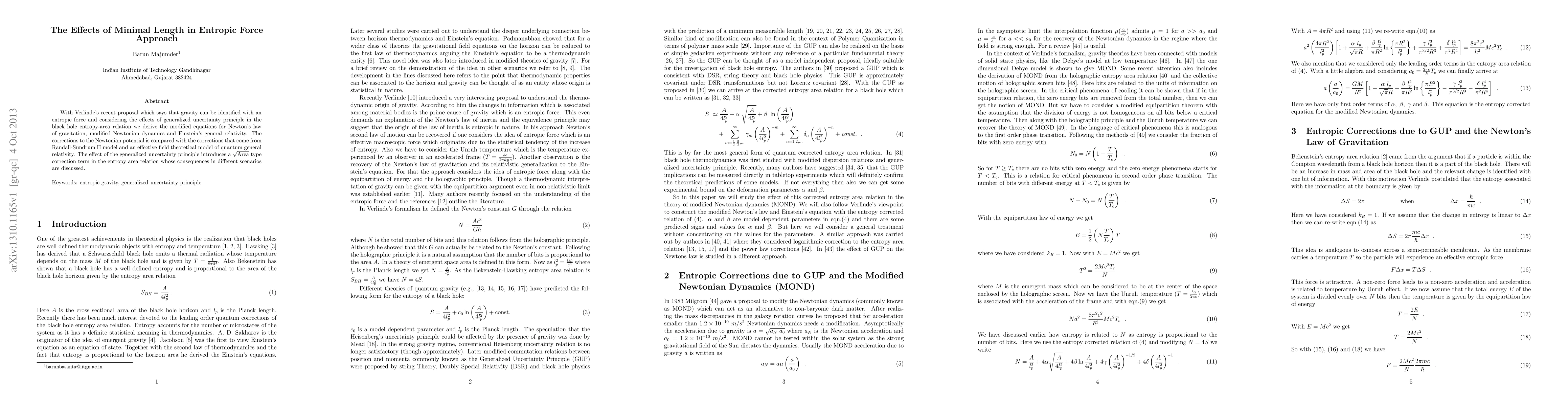 The paper presents a detailed derivation of modified gravitational equations using an entropic force approach incorporating the generalized uncertainty principle, linking it to the black hole entropy-area relation.