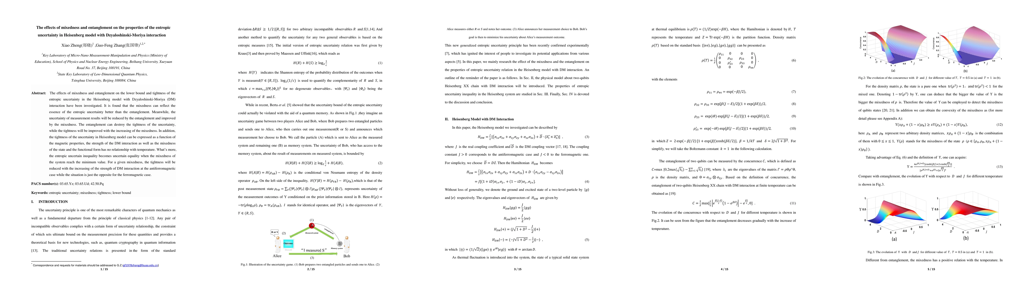 This paper investigates how mixedness and entanglement influence the entropic uncertainty in the Heisenberg model with Dzyaloshinski-Moriya interaction. It finds that mixedness better reflects entropic uncertainty than entanglement, with mixedness improving uncertainty while entanglement reduces it. The study also reveals that entanglement can destroy the tightness of uncertainty, which is enhanced by increased mixedness.