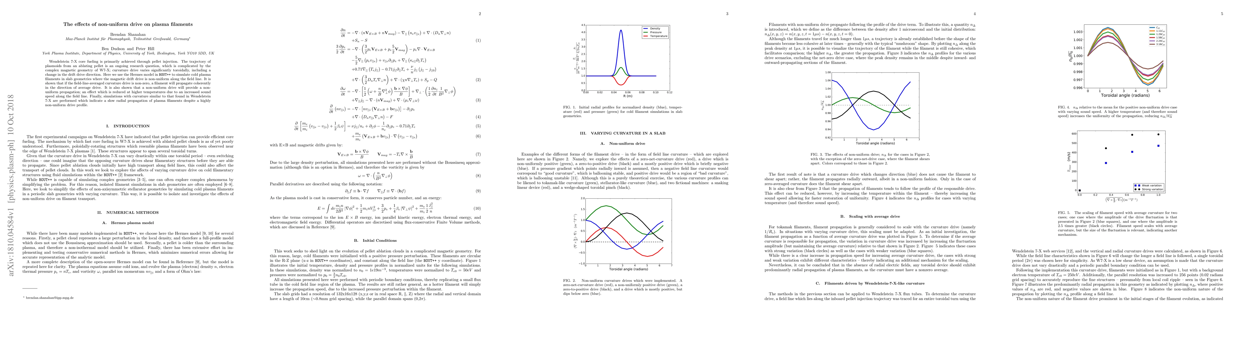 Researchers used simulations to study the effects of non-uniform drive on plasma filaments in Wendelstein 7-X core fueling. They found that a non-uniform drive can lead to non-uniform propagation of plasma filaments, but this effect is reduced at higher temperatures.