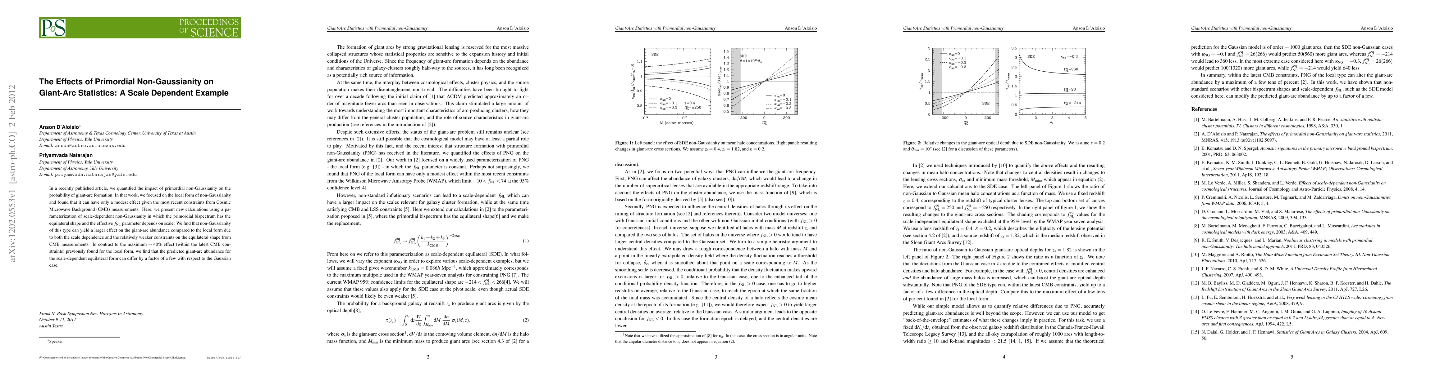 In a recently published article, we quantified the impact of primordial non-Gaussianity on the probability of giant-arc formation. In that work, we focused on the local form of non-Gaussianity and found that it can have only a modest effect given the most recent constraints from Cosmic Microwave Background (CMB) measurements. Here, we present new calculations using a parameterization of scale-dependent non-Gaussianity in which the primordial bispectrum has the equilateral shape and the effective f_NL parameter depends on scale. We find that non-Gaussianity of this type can yield a larger effect on the giant-arc abundance compared to the local form due to both the scale dependence and the relatively weaker constraints on the equilateral shape from CMB measurements. In contrast to the maximum ~40% effect (within the latest CMB constraints) previously found for the local form, we find that the predicted giant-arc abundance for the scale-dependent equilateral form can differ by a factor of a few with respect to the Gaussian case.