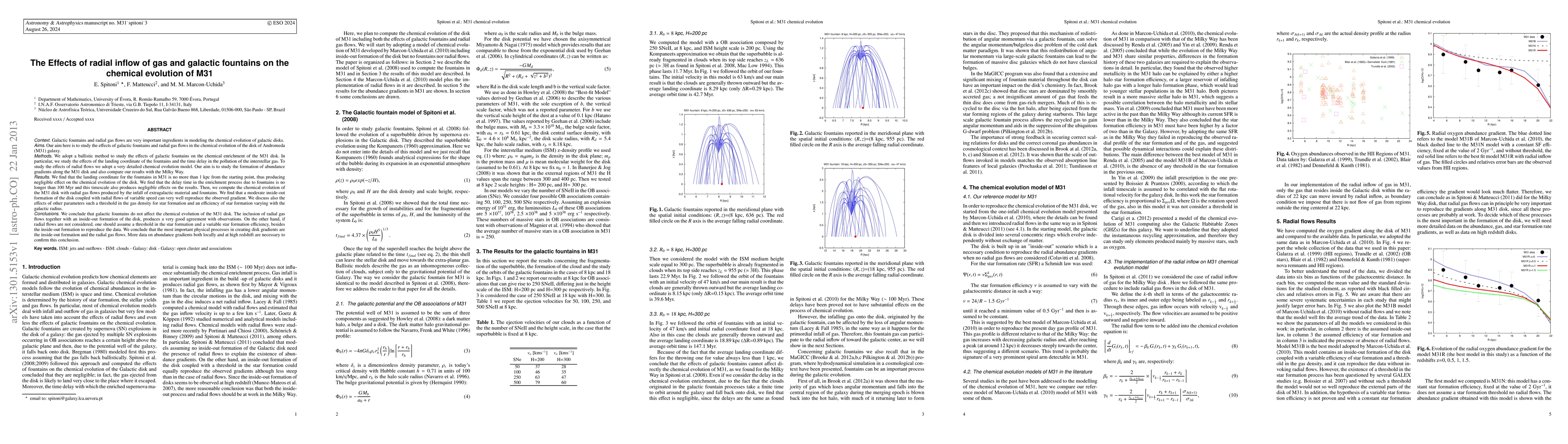 This paper investigates the impact of galactic fountains and radial gas inflows on the chemical evolution of M31's disk, finding that fountains have negligible effects due to short delay times. It concludes that radial gas flows and inside-out formation are key processes in creating observed chemical gradients, emphasizing the need for more data to confirm these findings.
