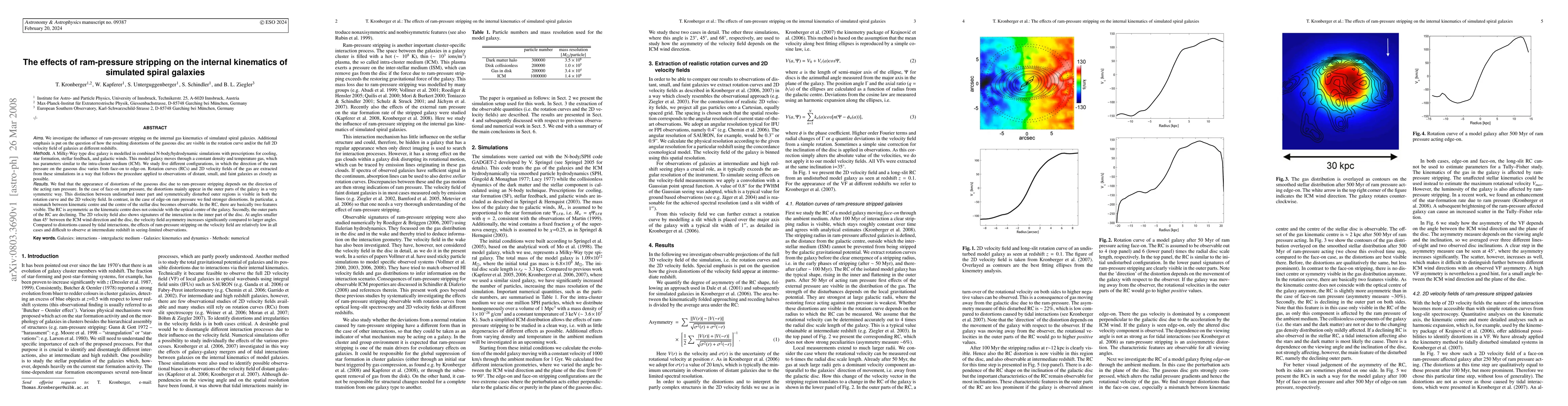 We investigate the influence of ram-pressure stripping on the internal gas kinematics of simulated spiral galaxies. Additional emphasis is put on the question of how the resulting distortions of the gaseous disc are visible in the rotation curve and/or the full 2D velocity field of galaxies at different redshifts. A Milky-Way type disc galaxy is modelled in combined N-body/hydrodynamic simulations with prescriptions for cooling, star formation, stellar feedback, and galactic winds. This model galaxy moves through a constant density and temperature gas, which has parameters similar to the intra-cluster medium (ICM). Rotation curves (RCs) and 2D velocity fields of the gas are extracted from these simulations in a way that follows the procedure applied to observations of distant, small, and faint galaxies as closely as possible. We find that the appearance of distortions of the gaseous disc due to ram-pressure stripping depends on the direction of the acting ram pressure. In the case of face-on ram pressure, the distortions mainly appear in the outer parts of the galaxy in a very symmetric way. In contrast, in the case of edge-on ram pressure we find stronger distortions. The 2D velocity field also shows signatures of the interaction in the inner part of the disc. At angles smaller than 45 degrees between the ICM wind direction and the disc, the velocity field asymmetry increases significantly compared to larger angles. Compared to distortions caused by tidal interactions, the effects of ram-pressure stripping on the velocity field are relatively low in all cases and difficult to observe at intermediate redshift in seeing-limited observations. (abridged)