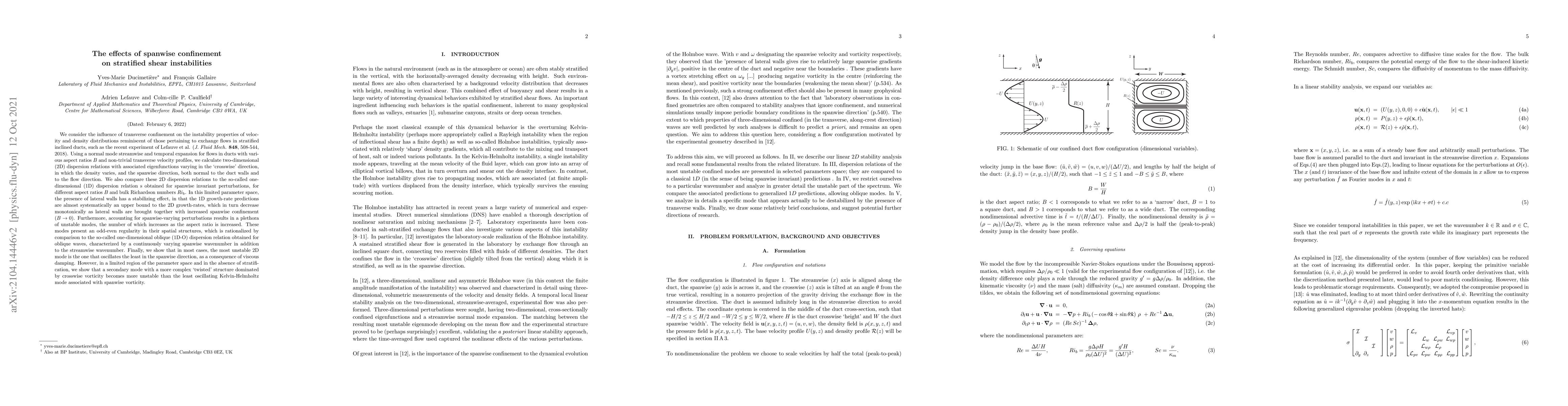The study investigates how transverse confinement affects stability in stratified shear flows, finding that lateral walls have a stabilizing effect and more unstable modes with unique spatial structures emerge as aspect ratios increase.