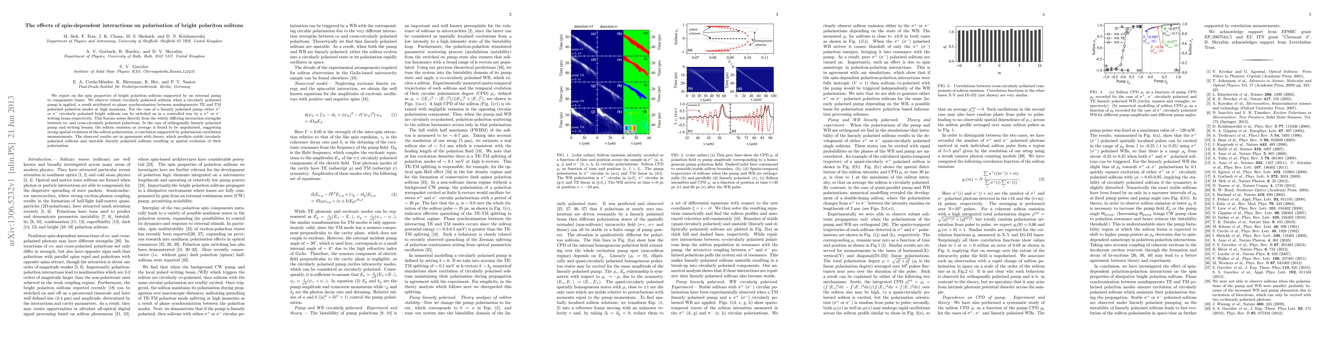 This paper investigates the spin-dependent interactions in bright polariton solitons, revealing that circularly polarised solitons form under a circularly polarised pump due to phase synchronisation. Linearly polarised solitons can be selectively generated by appropriate writing beams, highlighting differing interaction strengths between polaritons.