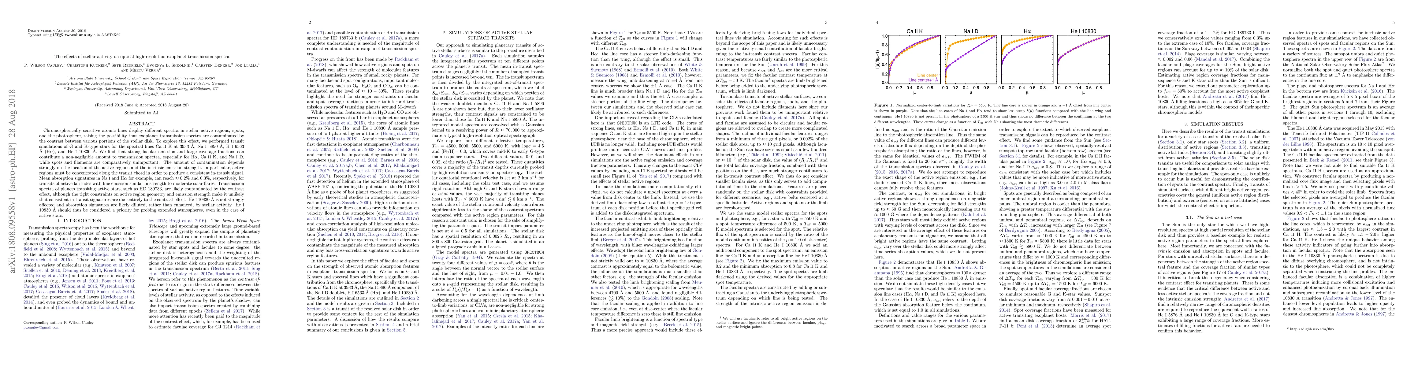 Chromospherically sensitive atomic lines display different spectra in stellar active regions, spots, and the photosphere, raising the possibility that exoplanet transmission spectra are contaminated by the contrast between various portions of the stellar disk. To explore this effect, we performed transit simulations of G and K-type stars for the spectral lines Ca II K at 3933 \AA, Na I 5890 \AA, H I 6563 \AA\ (H$\alpha$), and He I 10830 \AA. We find that strong facular emission and large coverage fractions can contribute a non-negligible amount to transmission spectra, especially for H$\alpha$, Ca II K, and Na I D, while spots and filaments are comparatively unimportant. The amount of contamination depends strongly on the location of the active regions and the intrinsic emission strength. In particular, active regions must be concentrated along the transit chord in order to produce a consistent in-transit signal. Mean absorption signatures in Na I and H$\alpha$ for example, can reach $\approx 0.2\%$ and $0.3\%$, respectively, for transits of active latitudes with line emission similar in strength to moderate solar flares. Transmission spectra of planets transiting active stars, such as HD 189733, are likely contaminated by the contrast effect, although the tight constraints on active region geometry and emission strength make it unlikely that consistent in-transit signatures are due entirely to the contrast effect. He I 10830 \AA\ is not strongly affected and absorption signatures are likely diluted, rather than enhanced, by stellar activity. He I 10830 \AA\ should thus be considered a priority for probing extended atmospheres, even in the case of active stars.