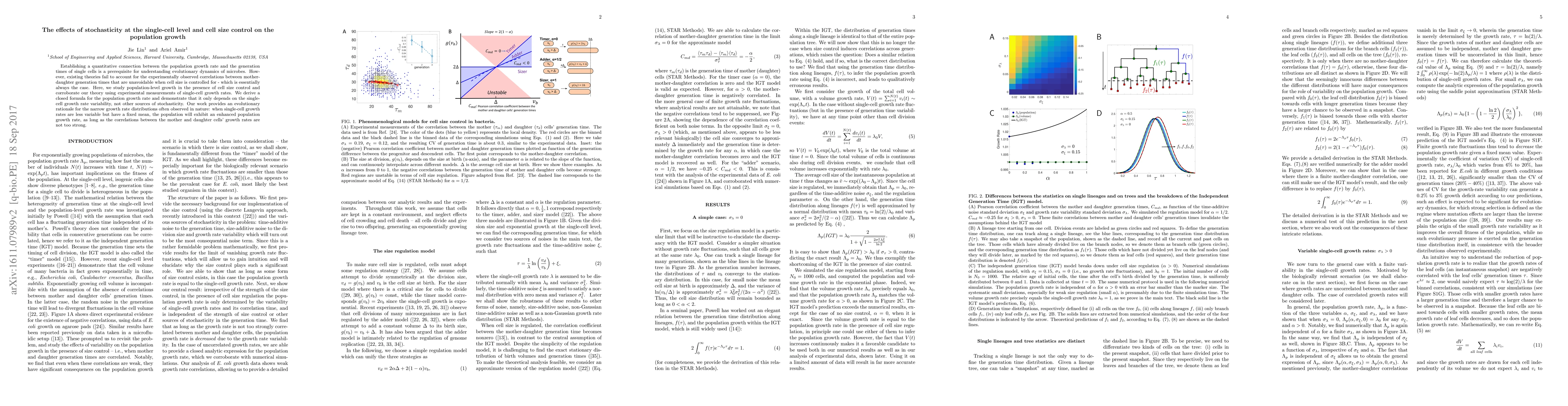 Establishing a quantitative connection between the population growth rate and the generation times of single cells is a prerequisite for understanding evolutionary dynamics of microbes. However, existing theories fail to account for the experimentally observed correlations between mother-daughter generation times that are unavoidable when cell size is controlled for - which is essentially always the case. Here, we study population-level growth in the presence of cell size control and corroborate our theory using experimental measurements of single-cell growth rates. We derive a closed formula for the population growth rate and demonstrate that it only depends on the single-cell growth rate variability, not other sources of stochasticity. Our work provides an evolutionary rationale for the narrow growth rate distributions often observed in nature: when single-cell growth rates are less variable but have a fixed mean, the population will exhibit an enhanced population growth rate, as long as the correlations between the mother and daughter cells' growth rates are not too strong.