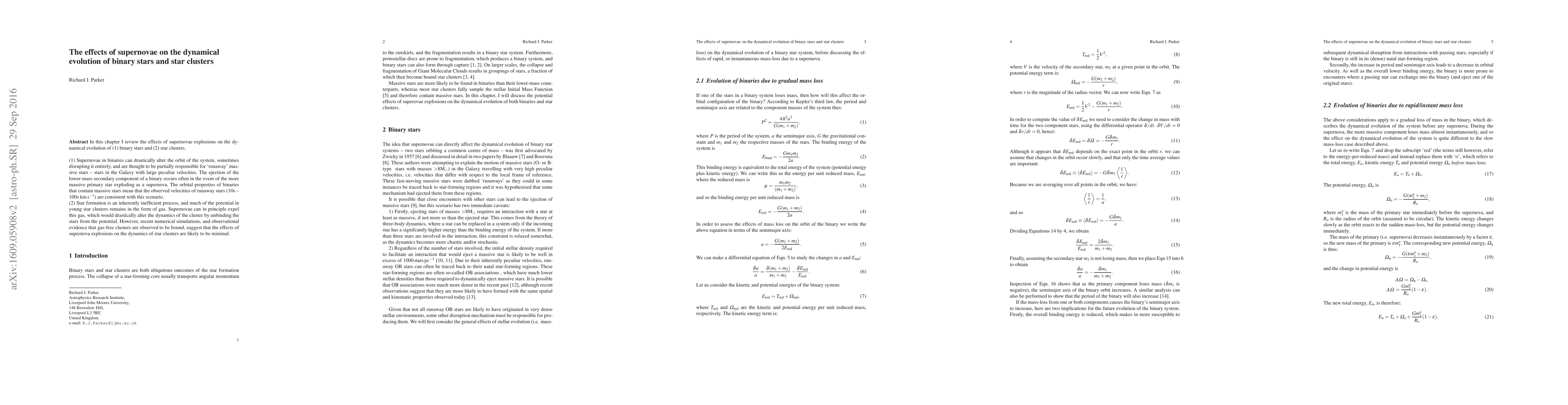 This paper reviews how supernovae influence the dynamics of binary stars and star clusters. Supernovae in binaries can disrupt orbits and contribute to runaway stars, while in star clusters, they may expel gas, though recent evidence suggests minimal impact on cluster dynamics.