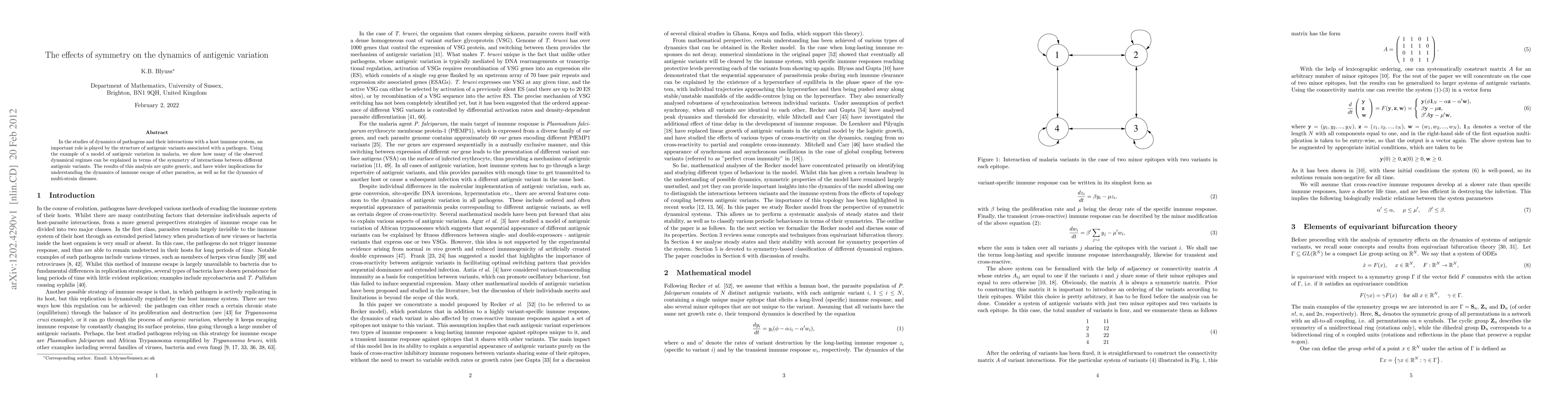 In the studies of dynamics of pathogens and their interactions with a host immune system, an important role is played by the structure of antigenic variants associated with a pathogen. Using the example of a model of antigenic variation in malaria, we show how many of the observed dynamical regimes can be explained in terms of the symmetry of interactions between different antigenic variants. The results of this analysis are quite generic, and have wider implications for understanding the dynamics of immune escape of other parasites, as well as for the dynamics of multi-strain diseases.