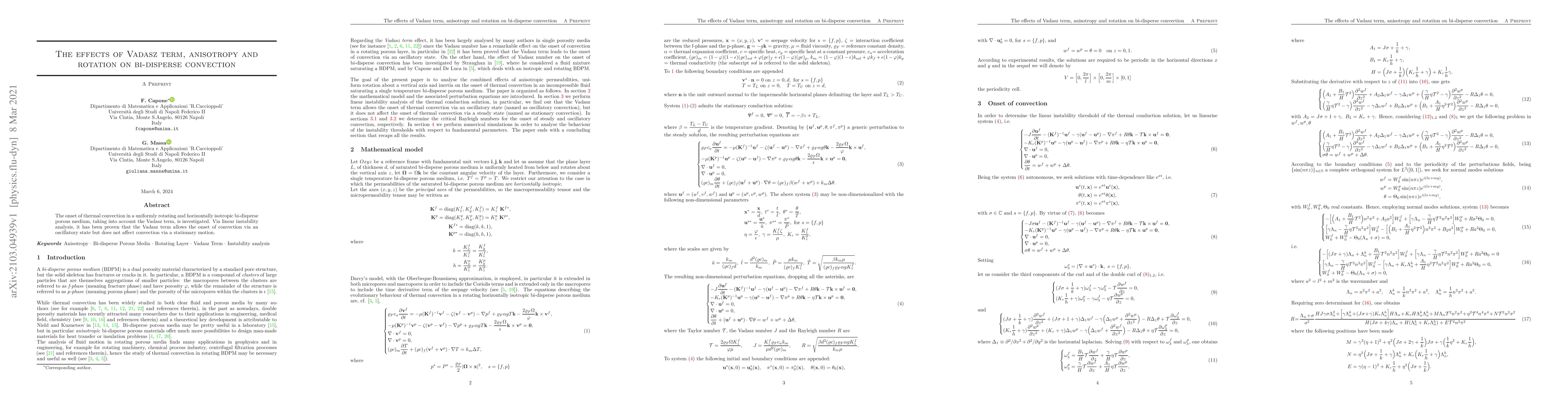 Summary: This study investigates the onset of thermal convection in a rotating and isotropic bi-disperse porous medium, considering the Vadasz term. Linear instability analysis reveals that the Vadasz term enables oscillatory convection but does not influence stationary convection.